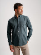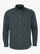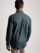 Camisa Regular Fit Estruturada Azul Manga Comprida Com Bolso Lisa