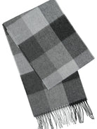 Cachecol cinzento aos quadrados grandes. Confortável e aconchegante, ideal para os dias mais frios de inverno.