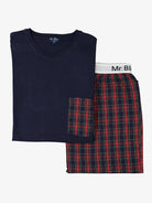 Pijama desportivo quadrados azul e vermelho, calça e t-shirt, 100% algodão