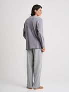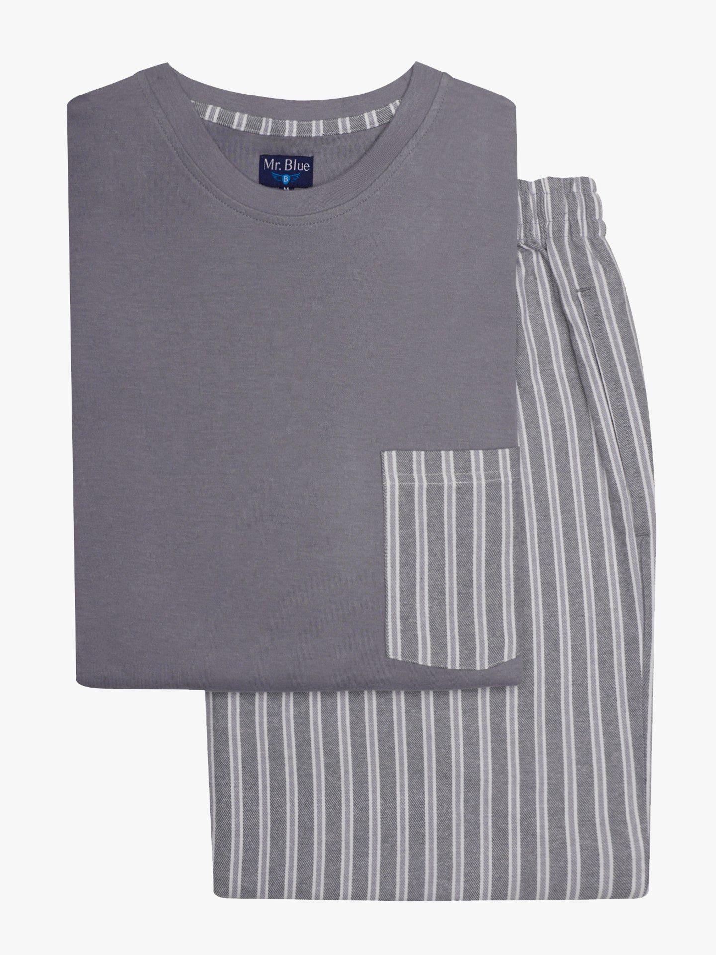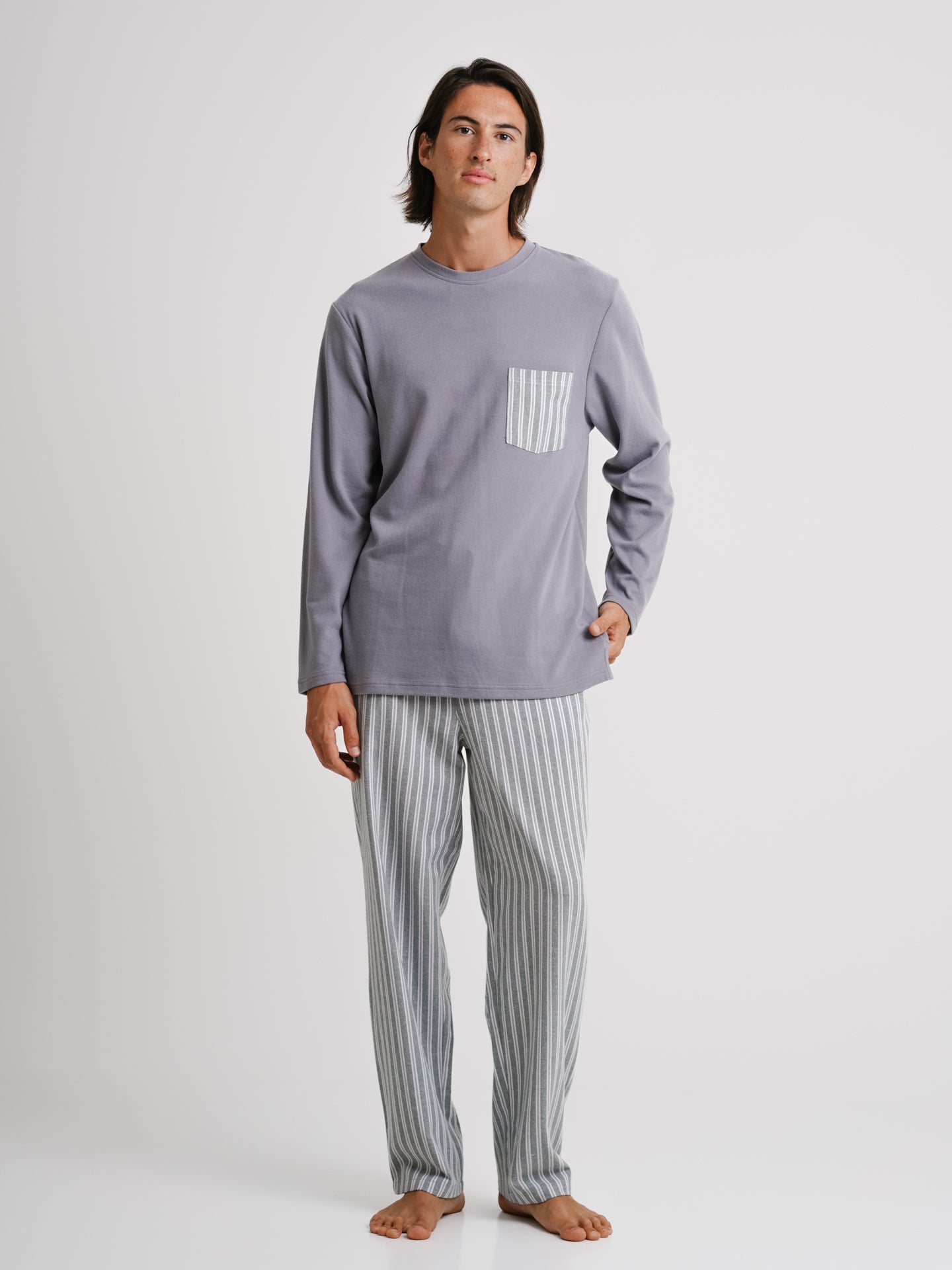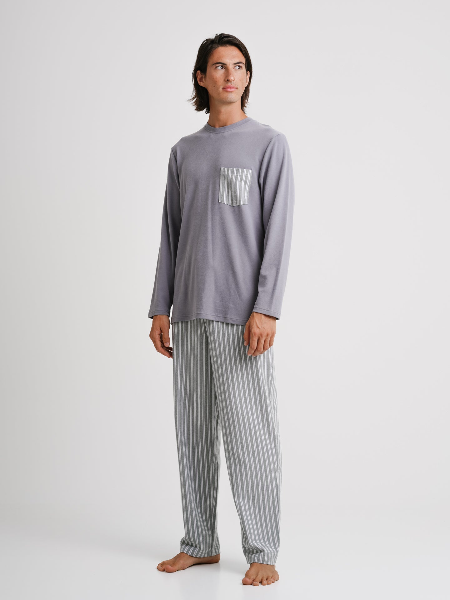 Pijama Cinzento Manga Comprida Algodão Manga Comprida Riscas Com bolso