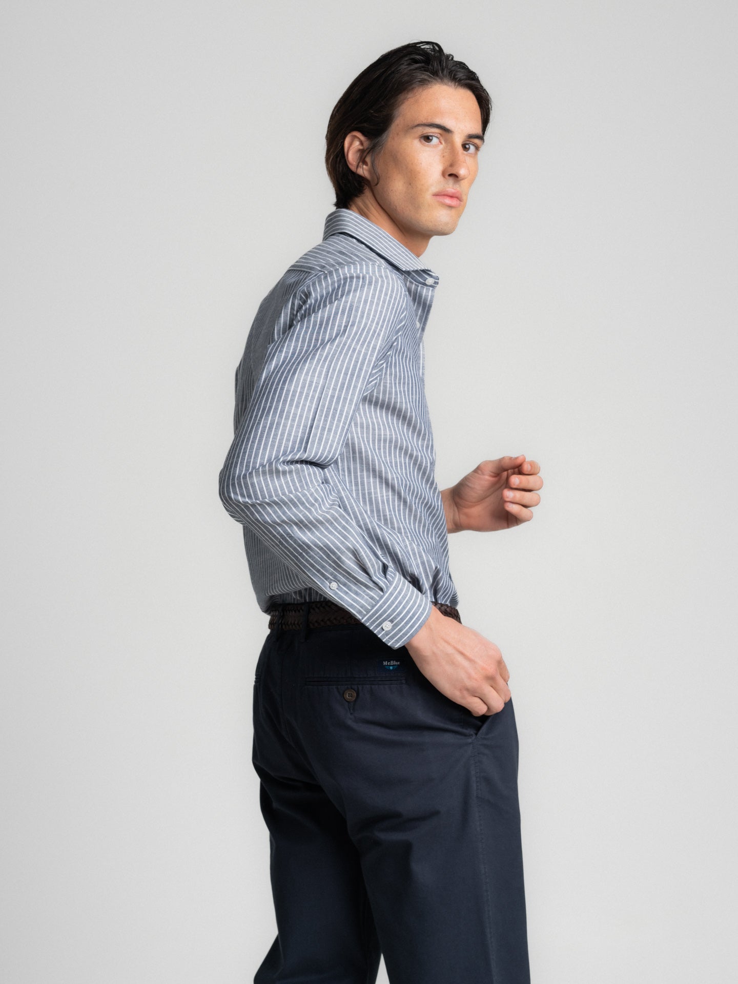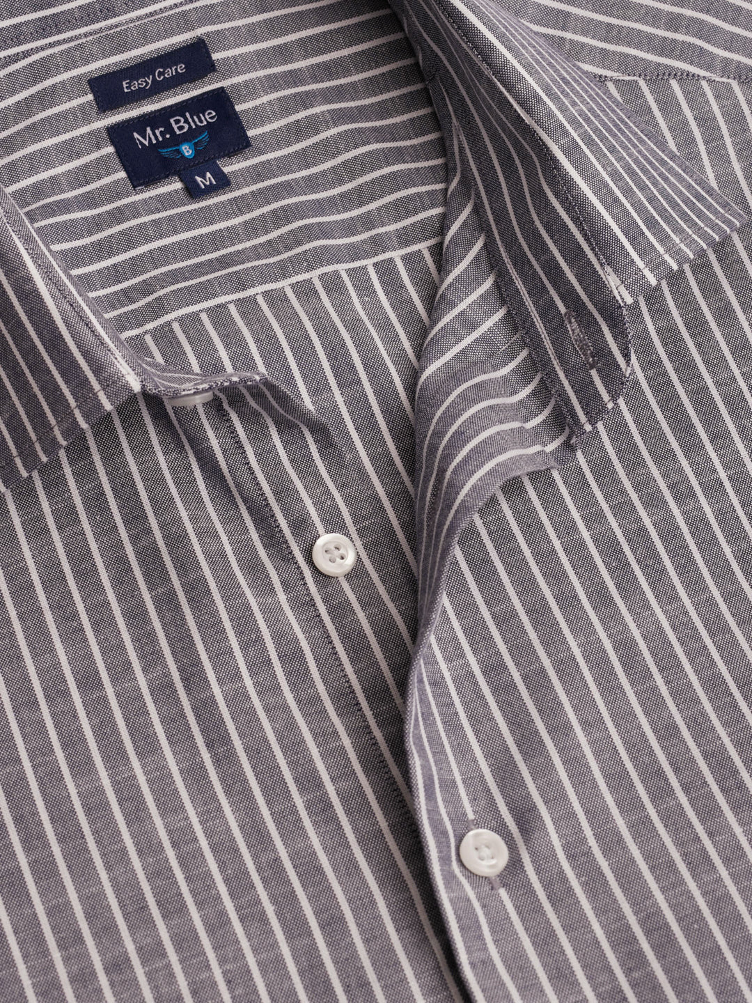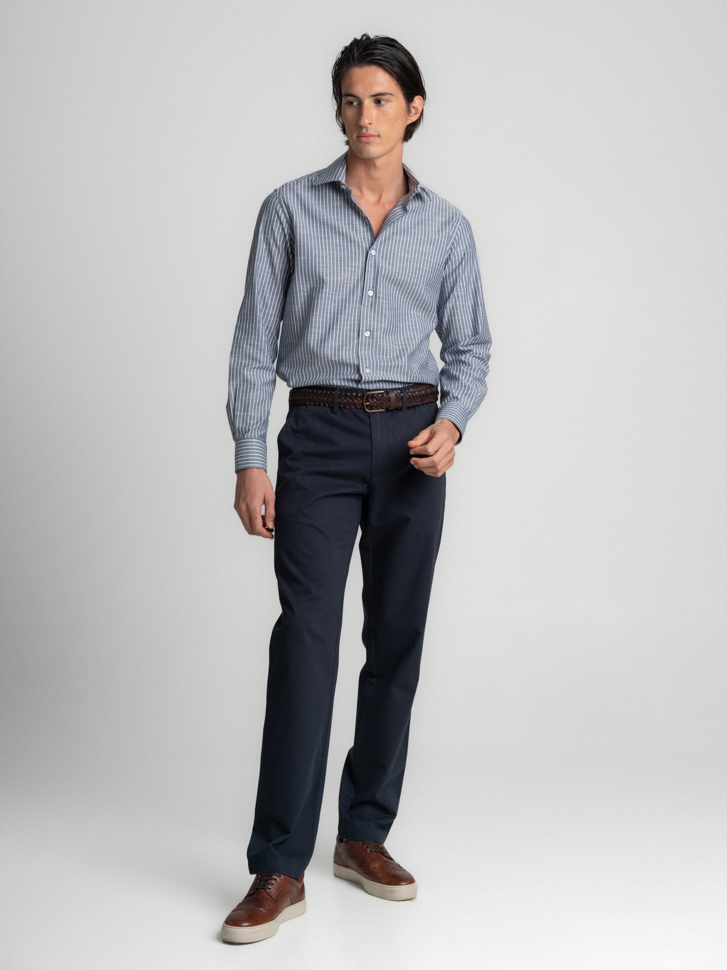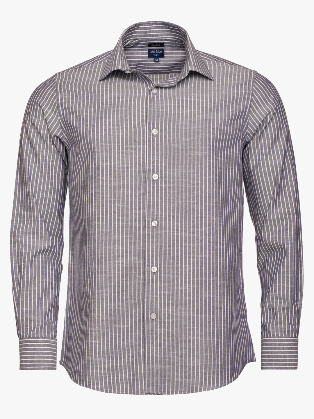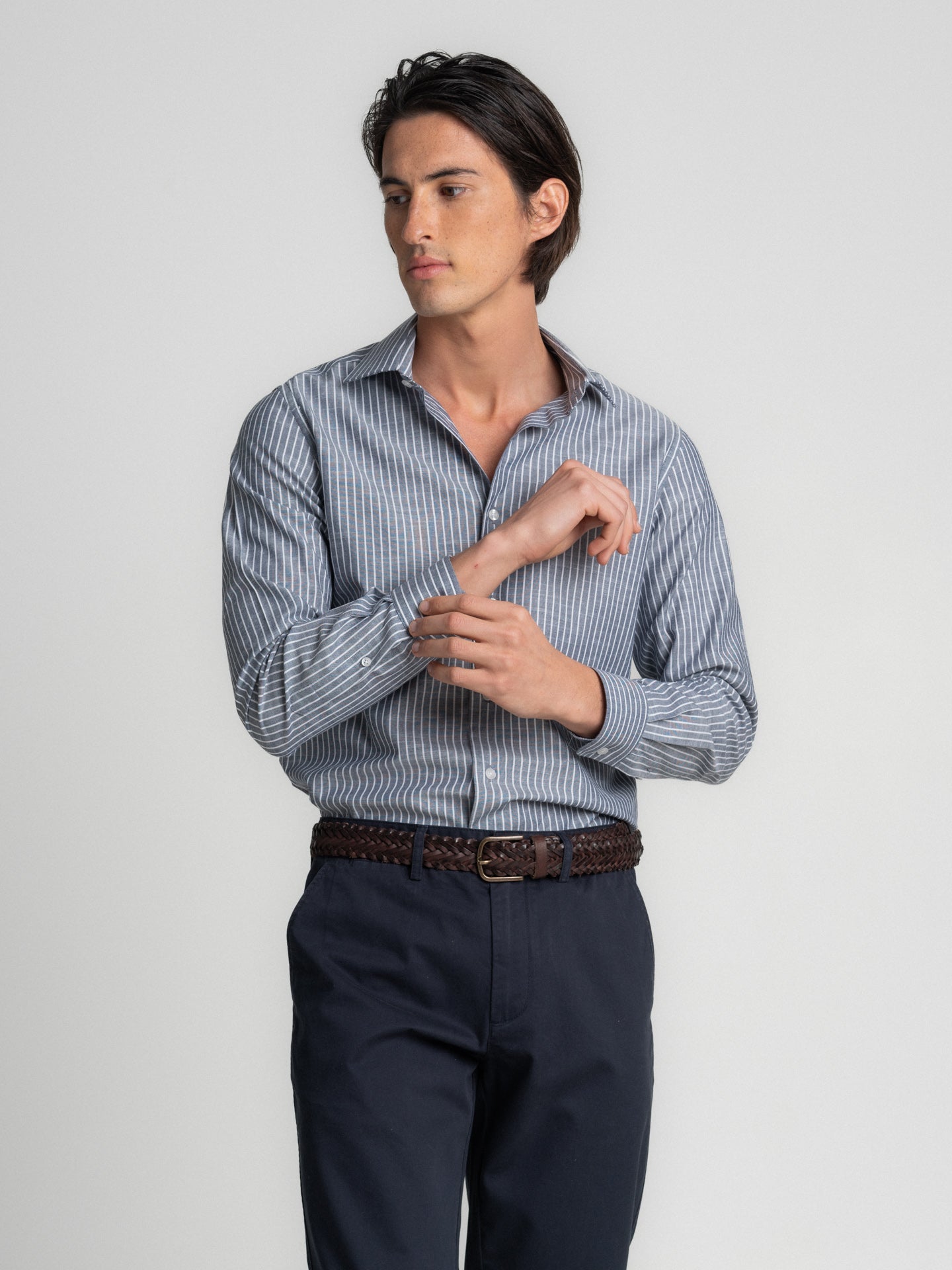 Camisa Slim Fit Oxford Cinzenta Manga Comprida às Riscas