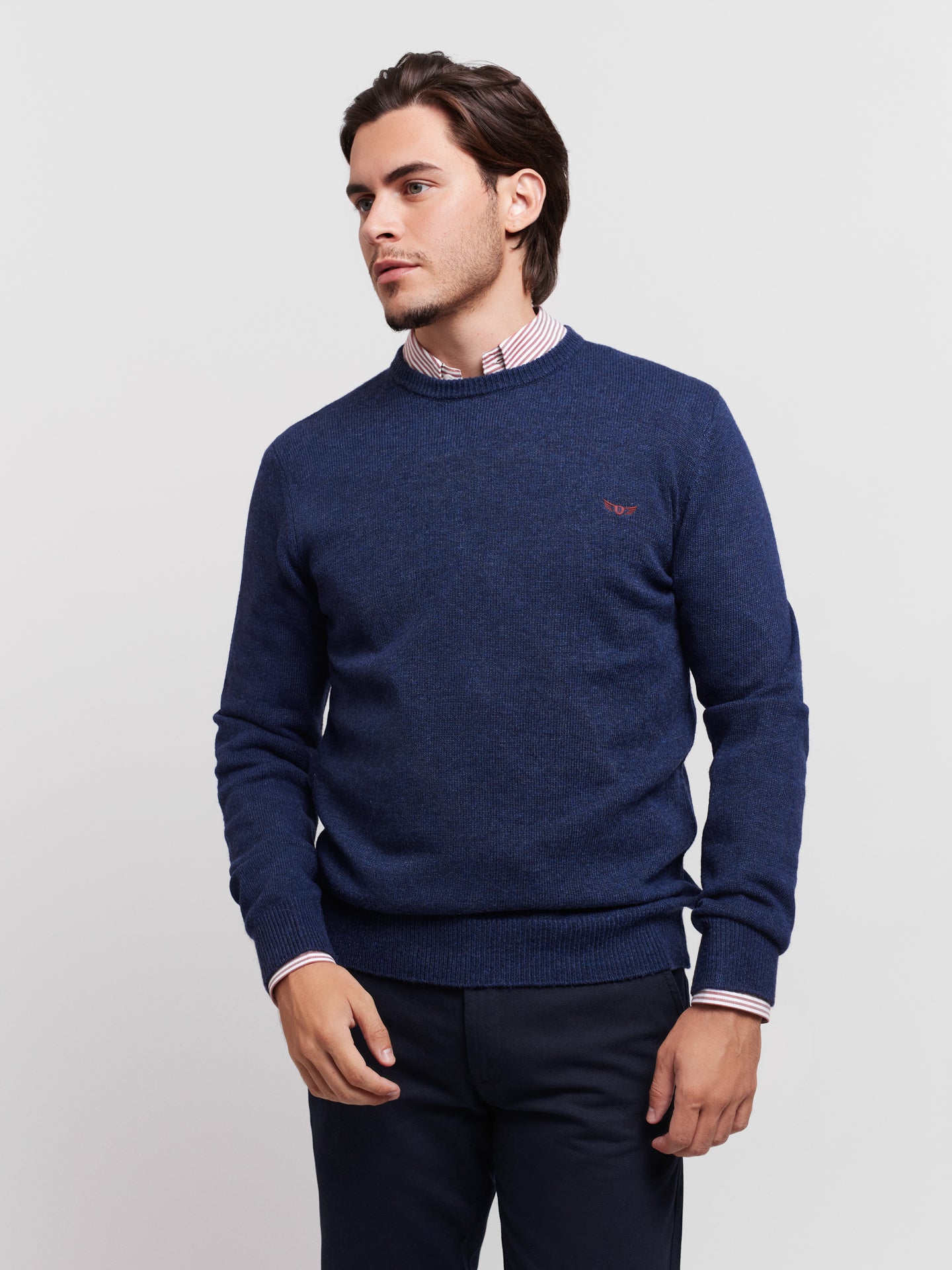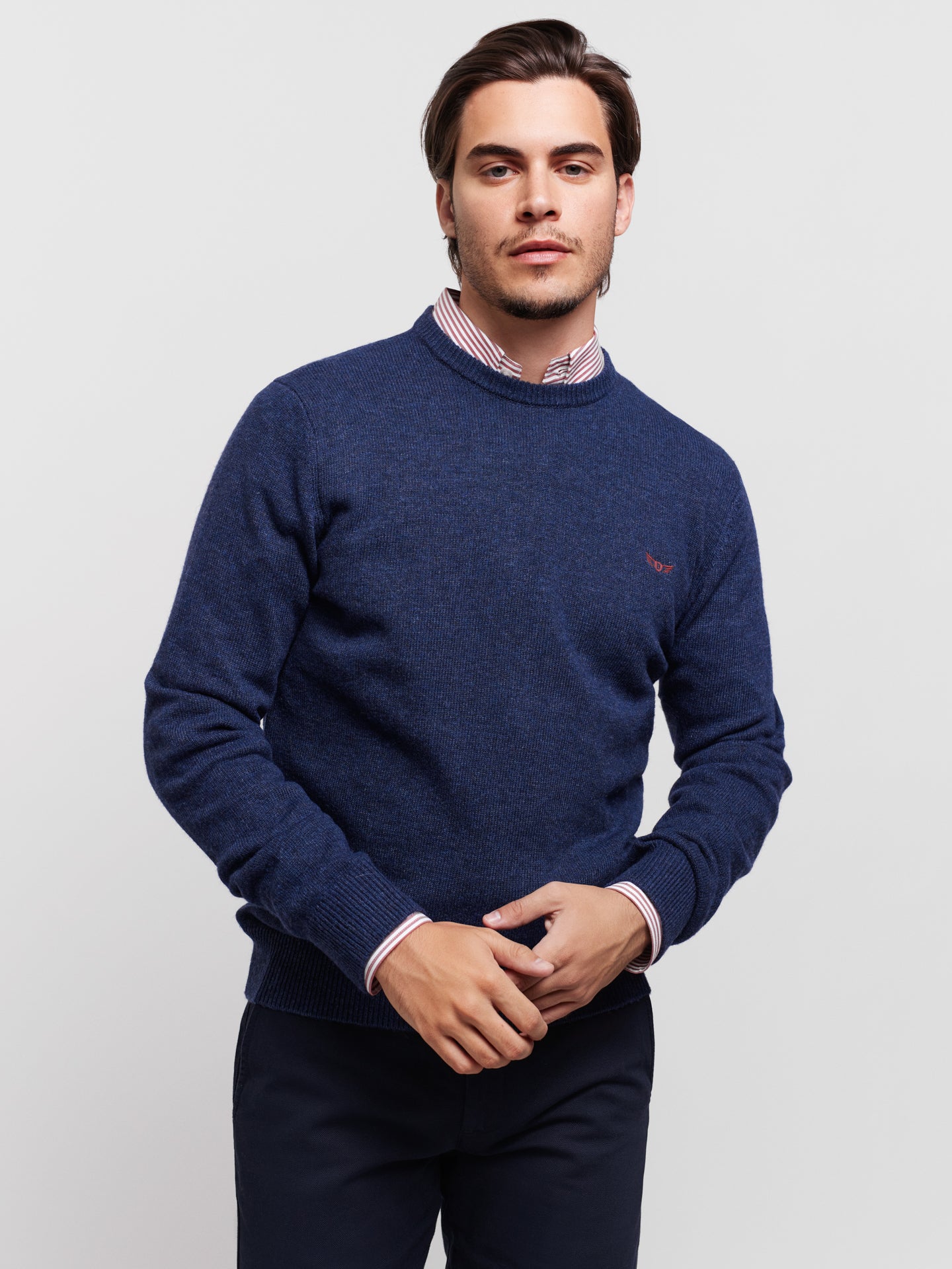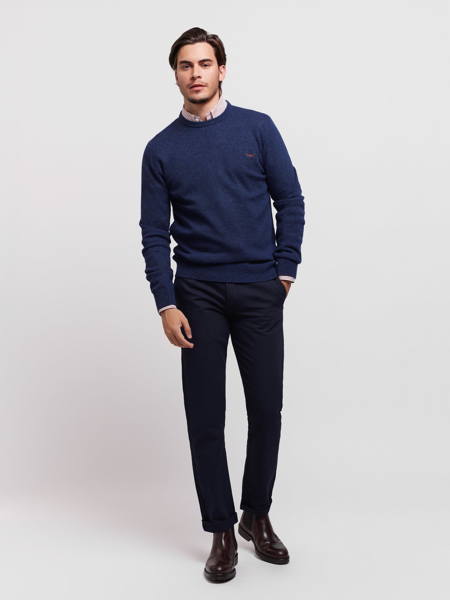Pullover Regular Fit Azul Manga CompridaManga Comprida Liso Com Logo