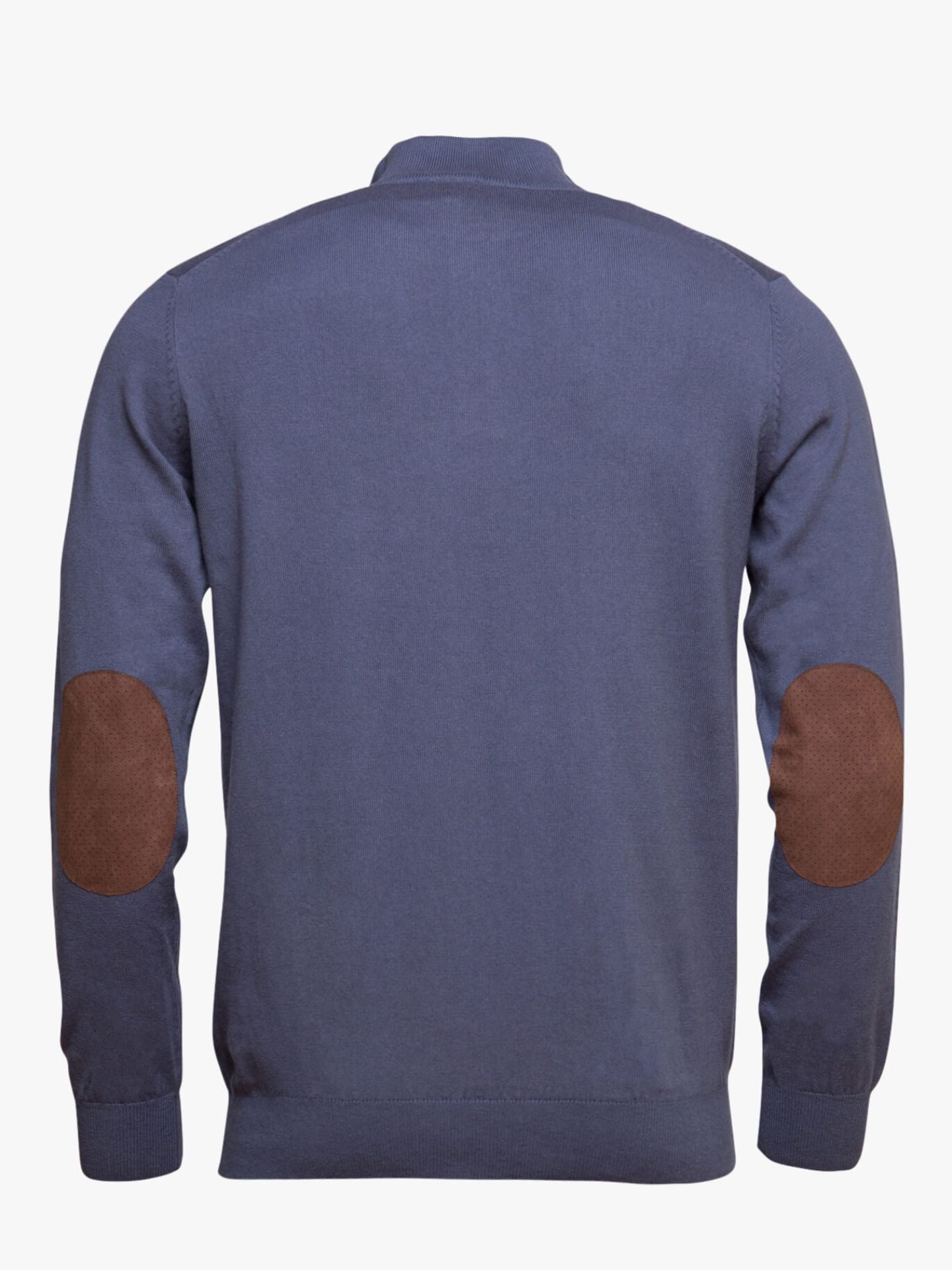 Pullover Algodão e Caxemira com detalhes cotoveleira, colarinho e carcela em camurça. Corte direito, gola alta com fecho de correr, manga comprida e acabamentos canelados. Muito confortável e descontraído.