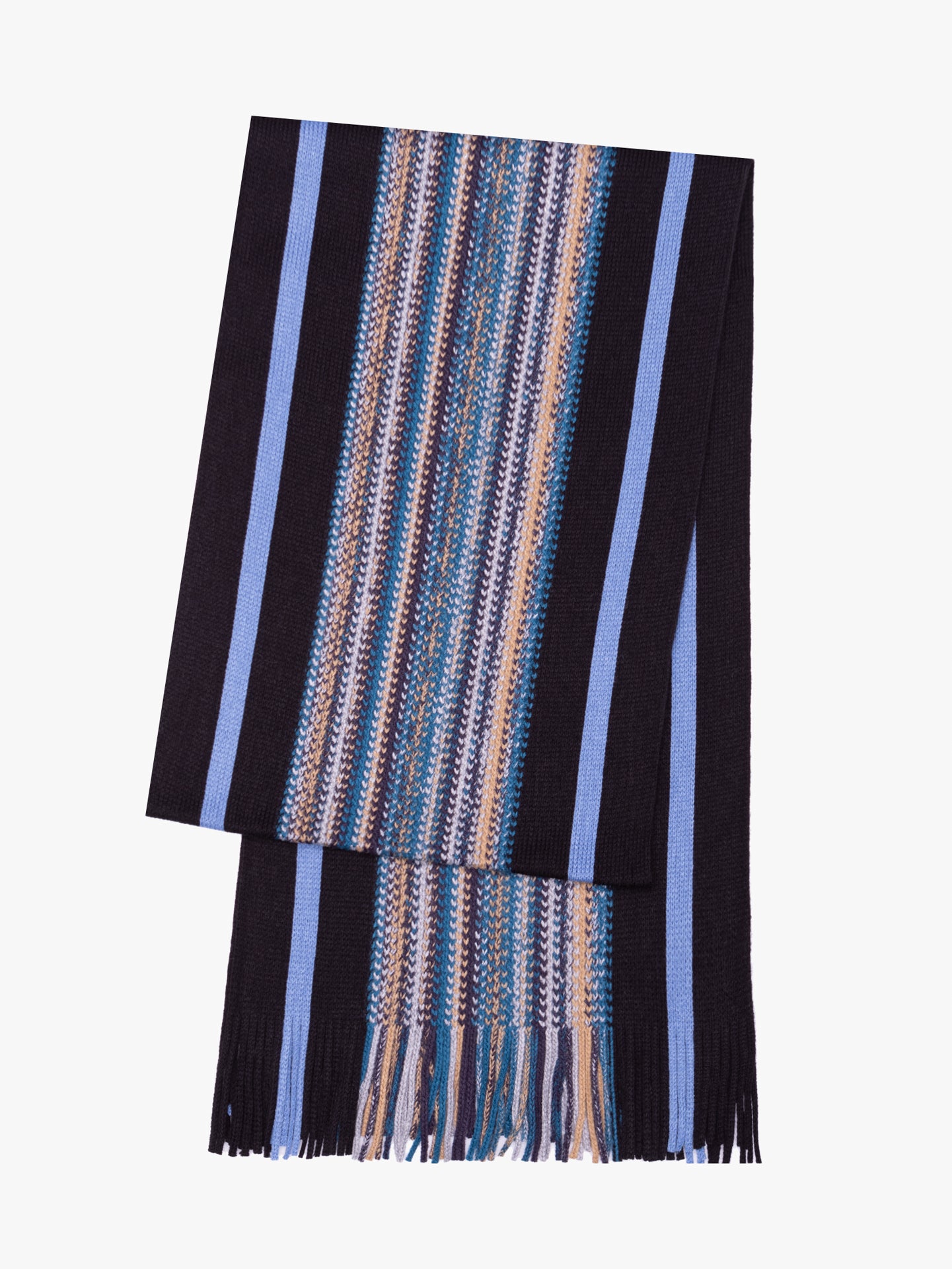 Cachecol Lã riscas grossas azul escuro e cinzento