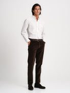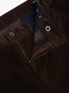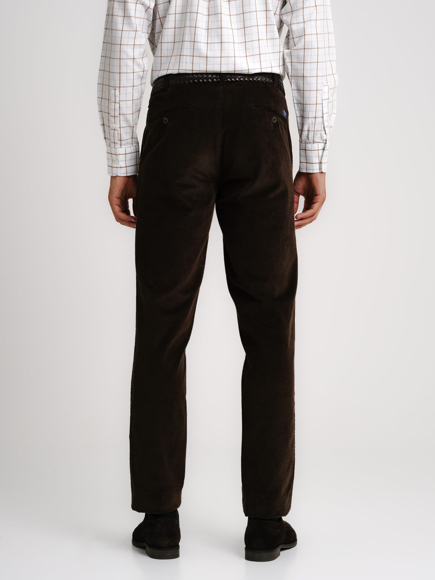 Calças Bombazine Regular Fit Castanho Algodão Liso