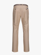 Calças chinos homem 100% algodão camel. Tape no cós em azul marinho e beige. Muito confortáveis, são a escolha certa para os dias mais quentes.