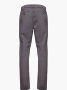 Calças chino para homem cinzento escuro, confecionadas em tecido algodão. Corte slim, fecho de botão e fecho de correr oculto por carcela, dois bolsos laterais, dois bolsos com casa de botão abotoados atrás em contraste e presilhas para cinto.