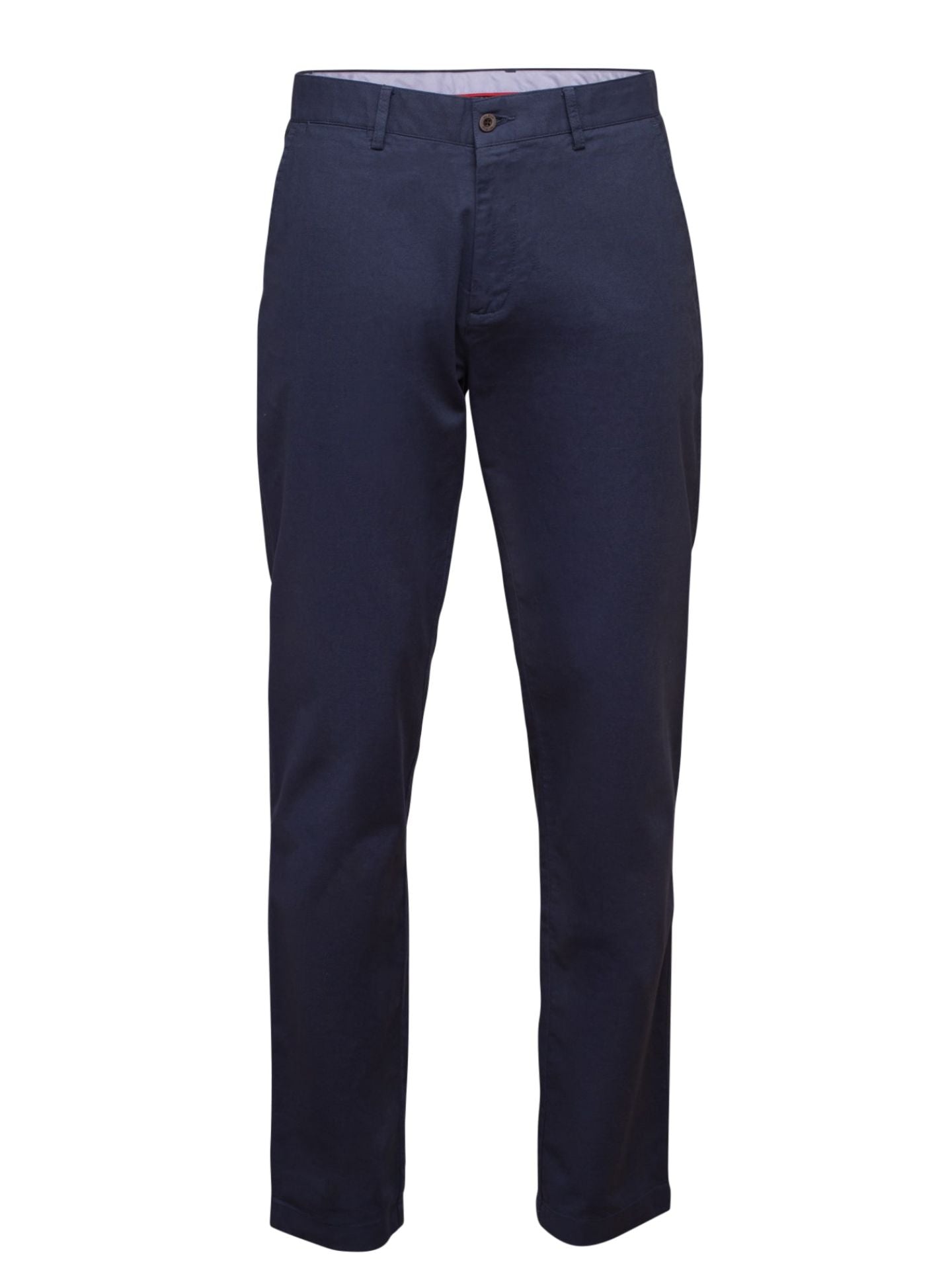 Calças Chino com estrutura lisas. Carcela com fecho de correr oculto, 2 bolsos laterais, 2 bolsos de ilhós abotoado na parte posterior e presilhas para o cinto. Muito confortável e versátil. É a escolha ideal para um dia de trabalho ou para o fim de sema