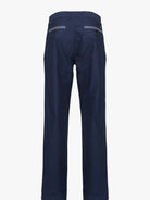 Calças Chinos Homem 100% Algodão Oxford azul escuro com interior do cós mil raias azul claro e riscas azul denim. Detalhe bolso traseiro em oxford azul médio. Corte Tailored Fit. Muito confortáveis, são a escolha certa para os dias m