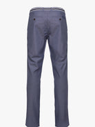 Calças Chinos Homem 100% Algodão Oxford Slim Fit azul denim com tape no cós em branco e azul marinho. Interior cós mil raias e riscas azul e branco. Corte Tailored Fit. Muito confortáveis, são a escolha certa para os dias mais quente