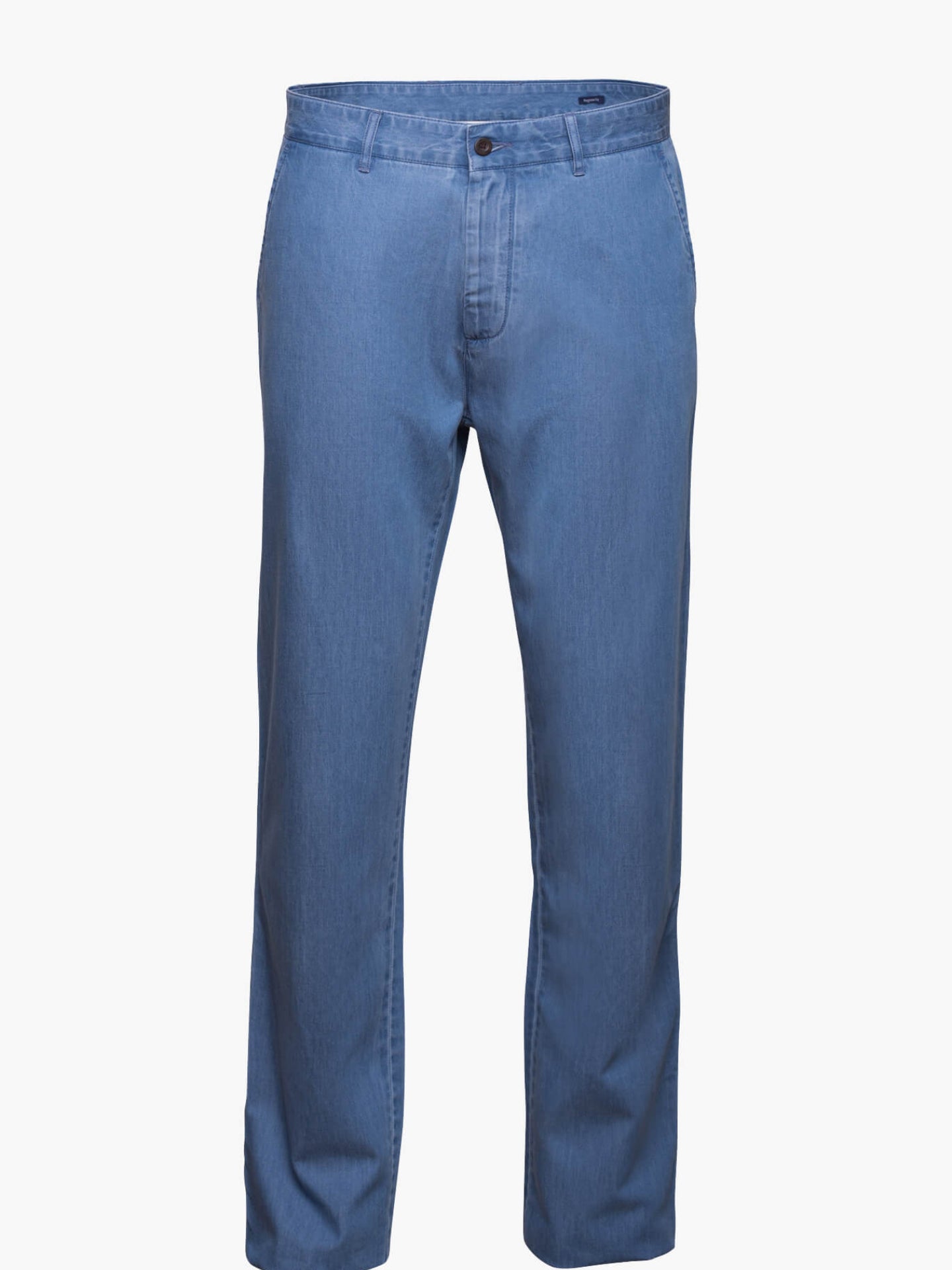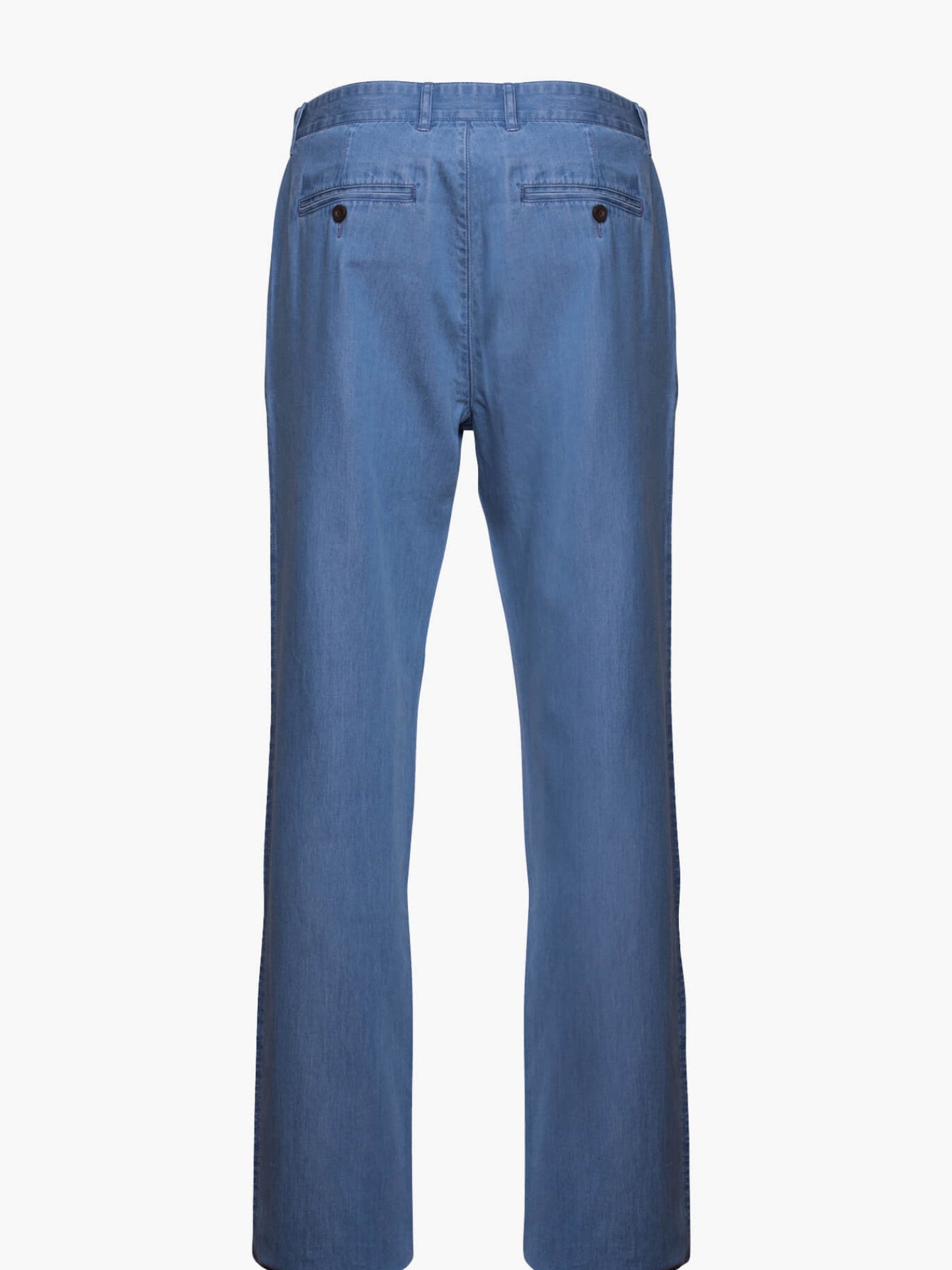 Calças ganga Homem 100% Algodão azul claro cintura subida. Muito confortáveis, são a escolha certa para os dias mais quentes.