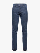 Jeans denim azul acinzentado escuro com 5 bolsos