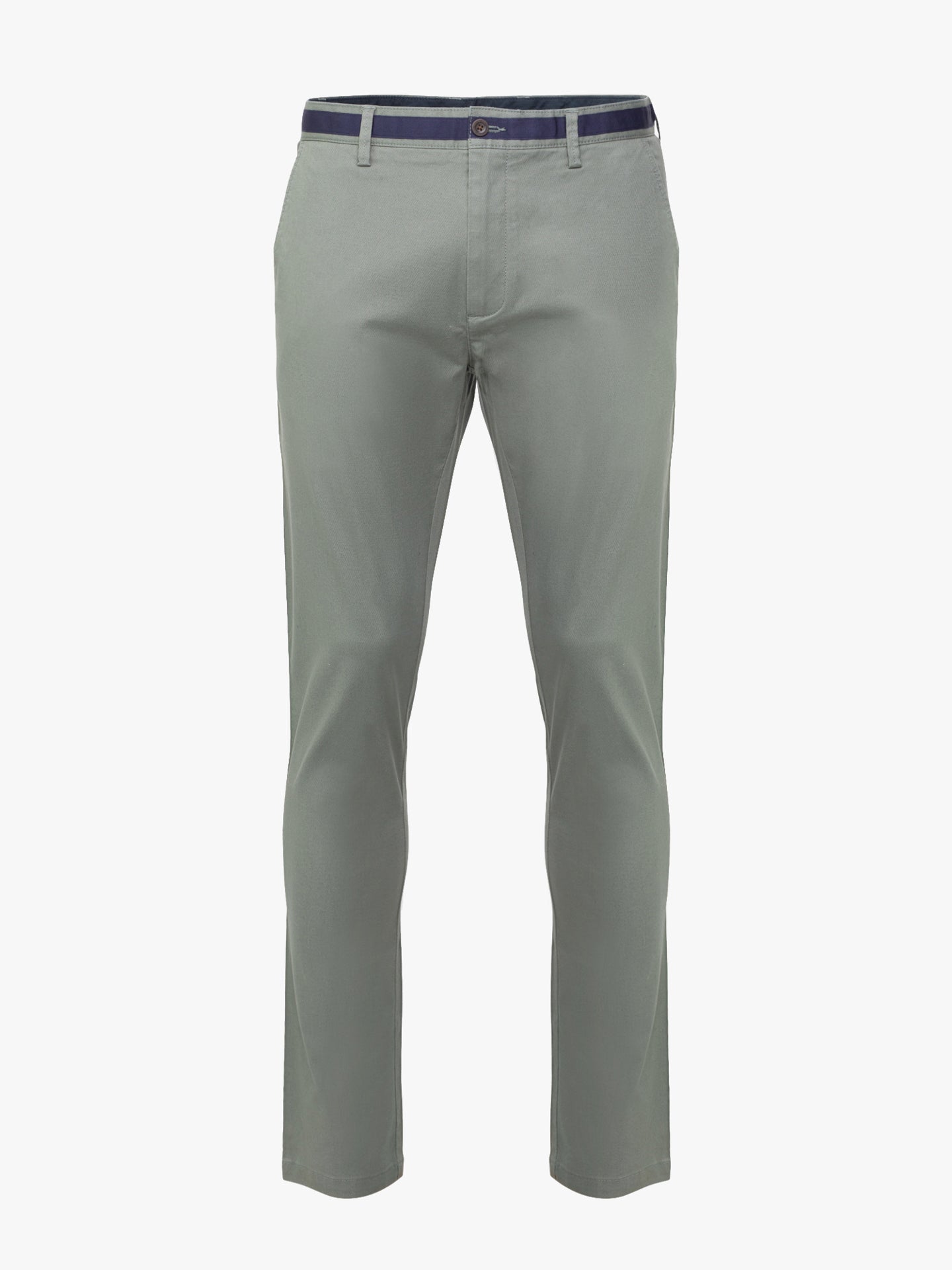 Calça Homem Chino Classic Fit 100% Algodão Verde. Cós com tape azul.