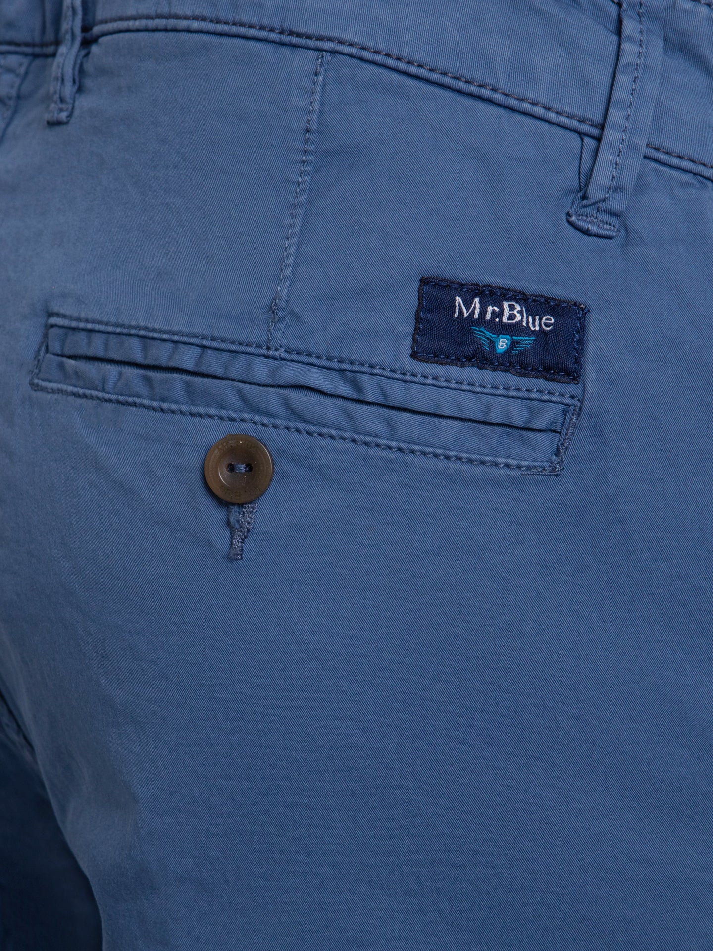 Calções bermuda Homem com elastano Twill Garment Dye azul denim Ideais para dias mais quentes ou para fim-de-semana descontraído