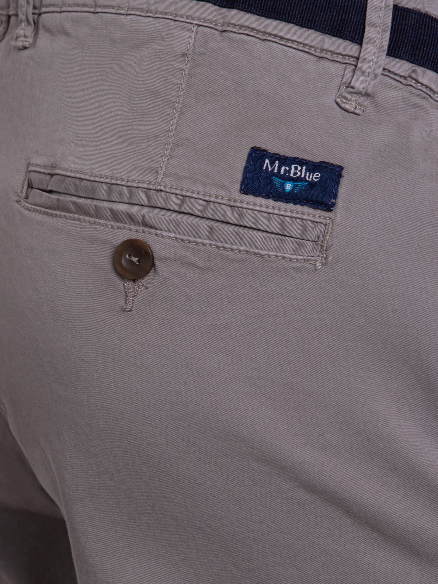 Calções bermuda Homem com elastano Twill Garment Dye verde azeitona com detalhe cós Ideais para dias mais quentes ou para fim-de-semana descontraído