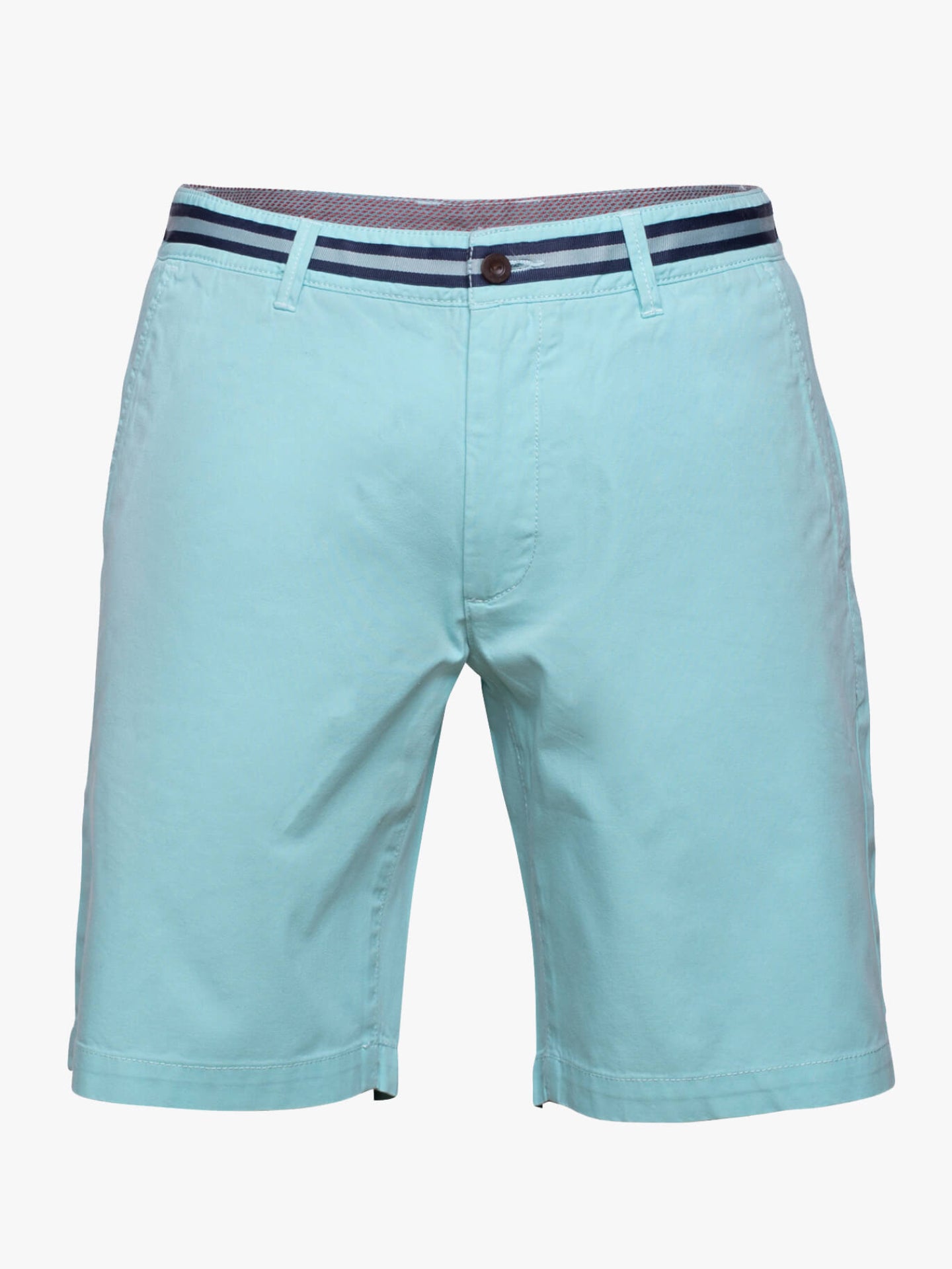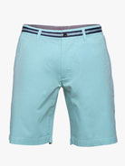 Calções bermuda Homem 100% Algodão Canvas verde menta com detalhe cós em azul marinho e cinza claro Ideais para dias mais quentes ou para fim-de-semana descontraído