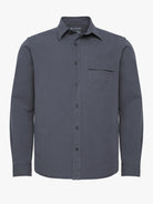Camisa Regular Fit Dobby Azul Manga Comprida Com Bolso Lisa