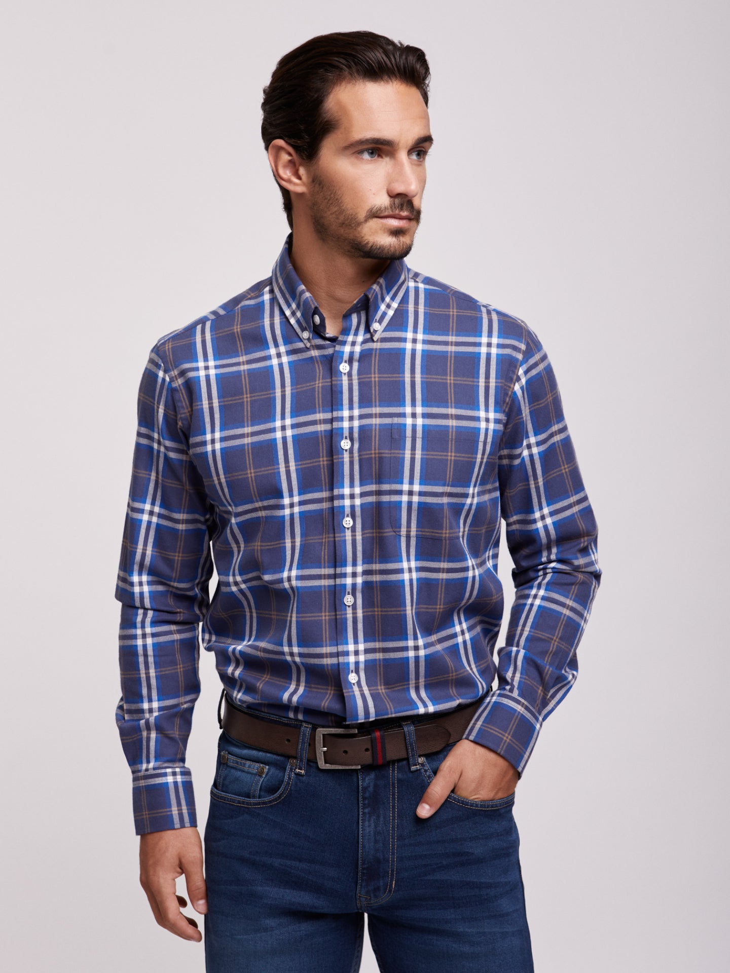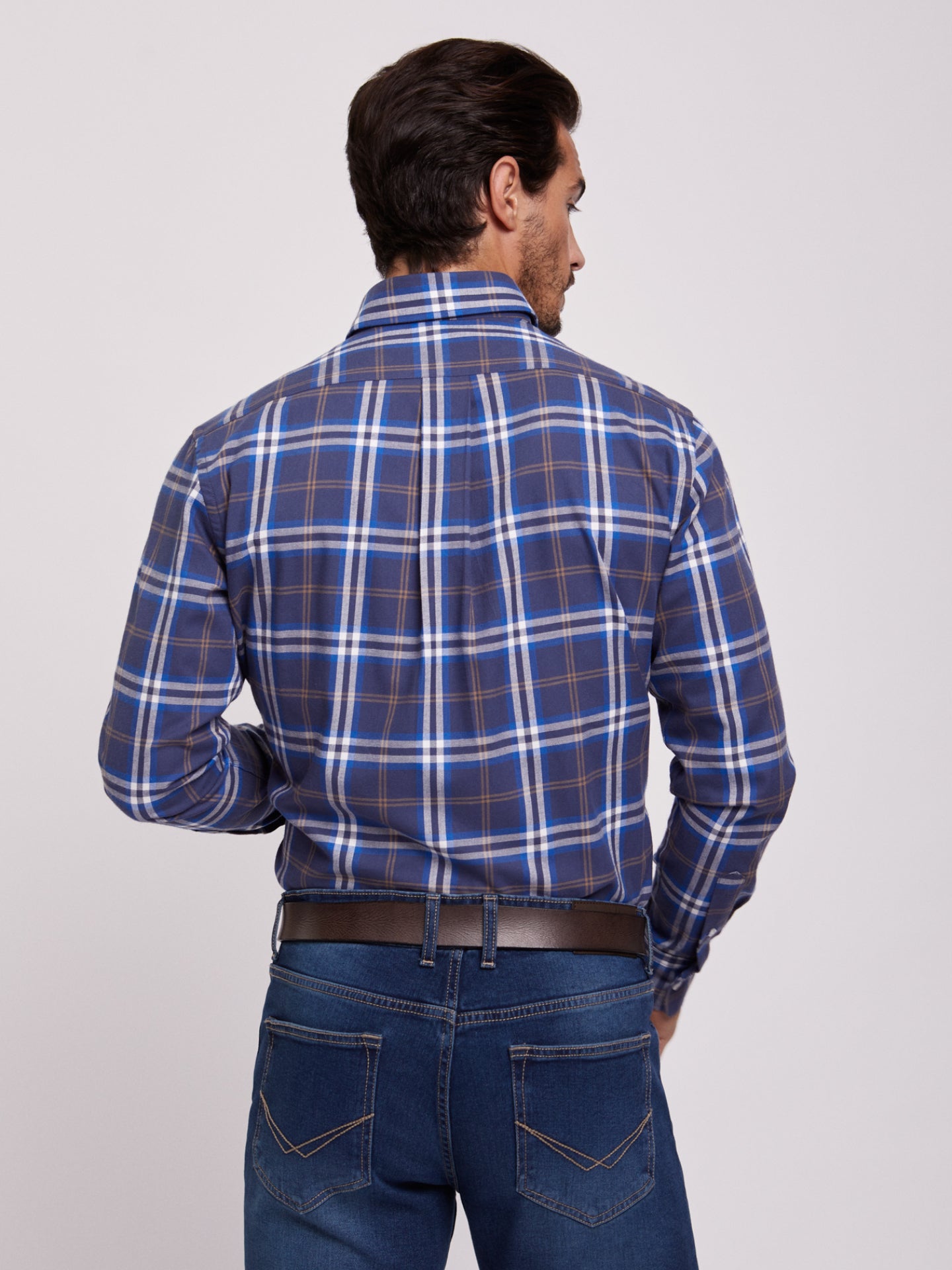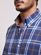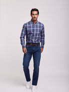 Camisa Regular Fit Azul Manga CompridaManga Comprida Quadrados