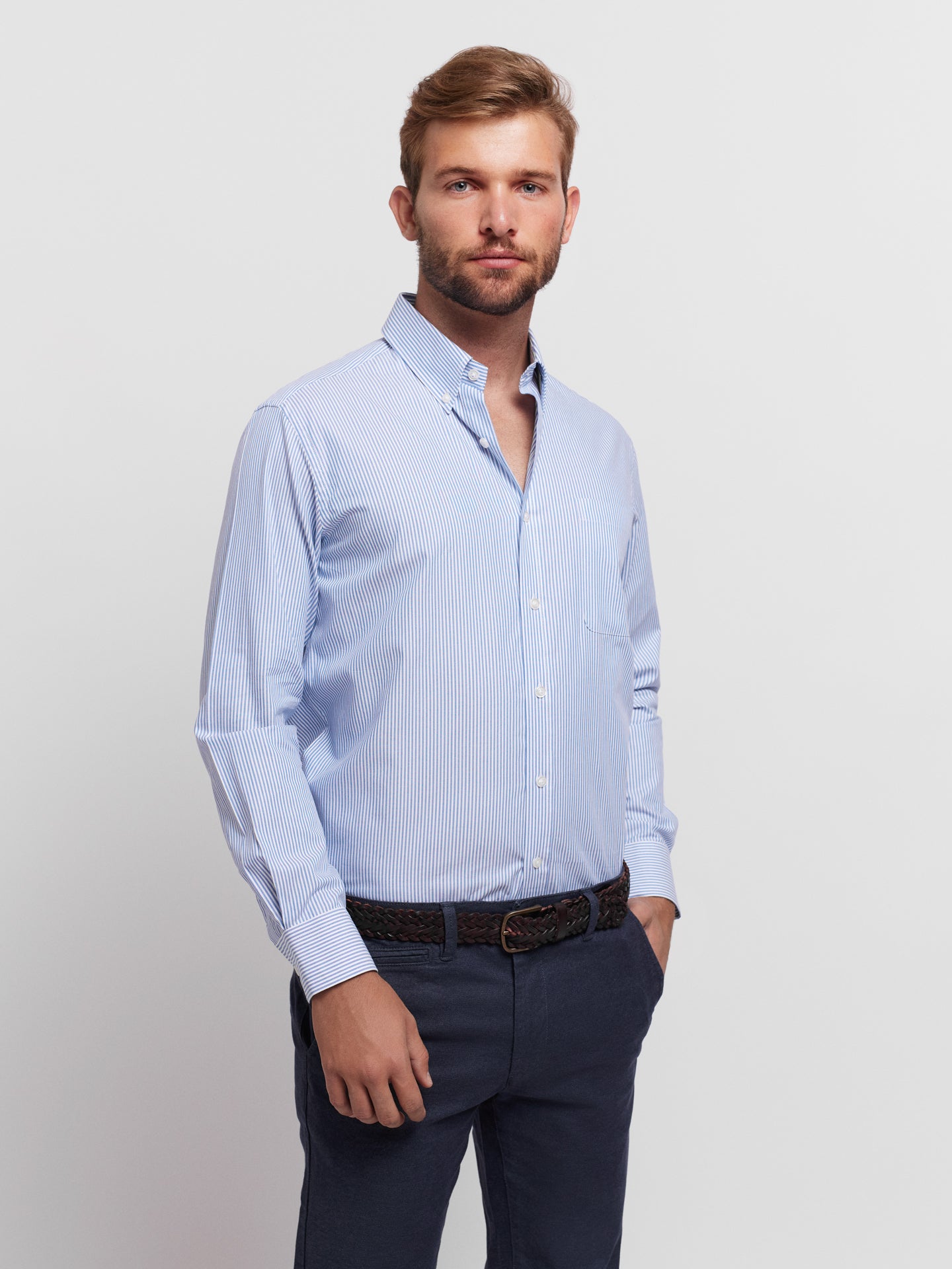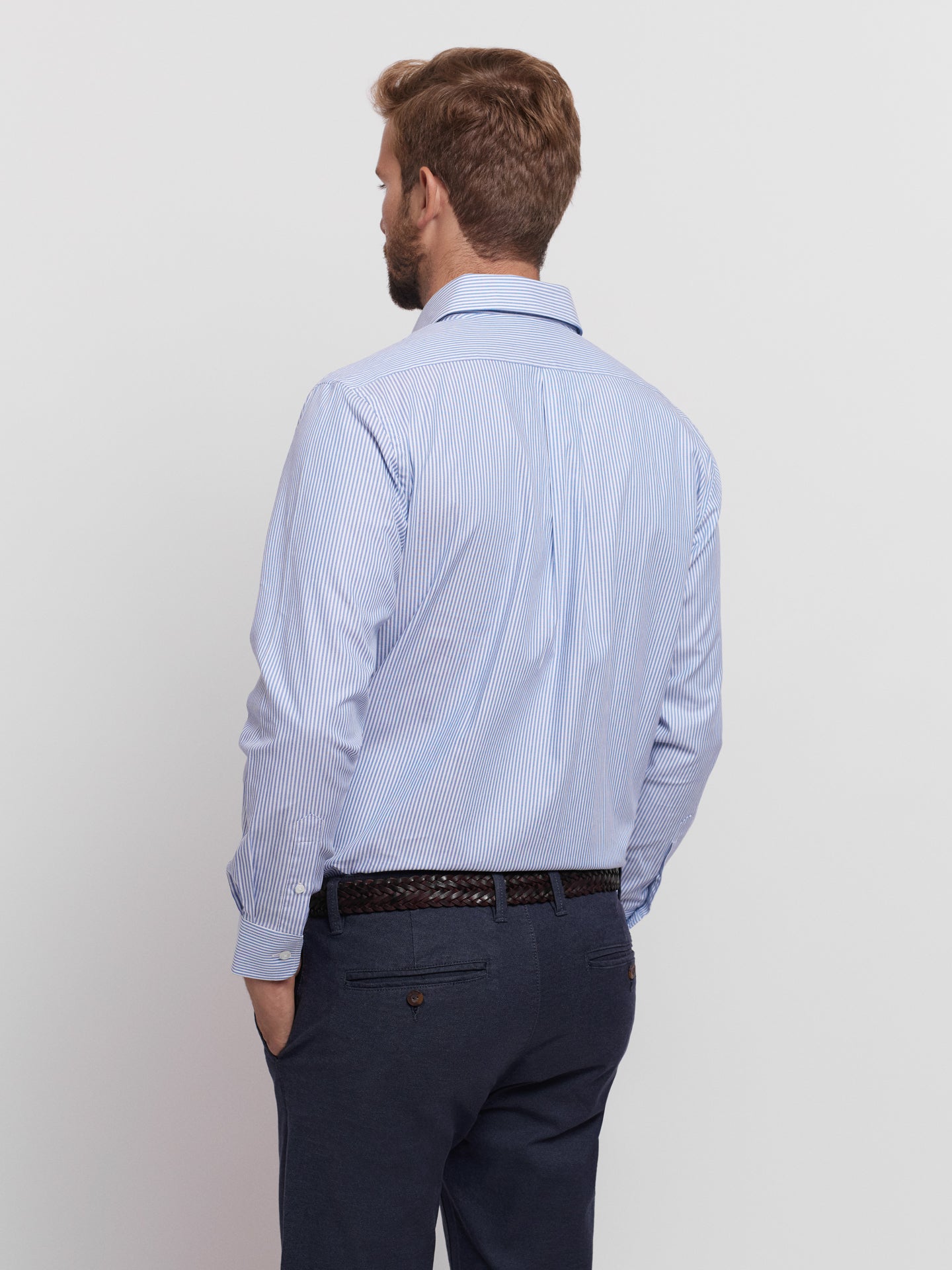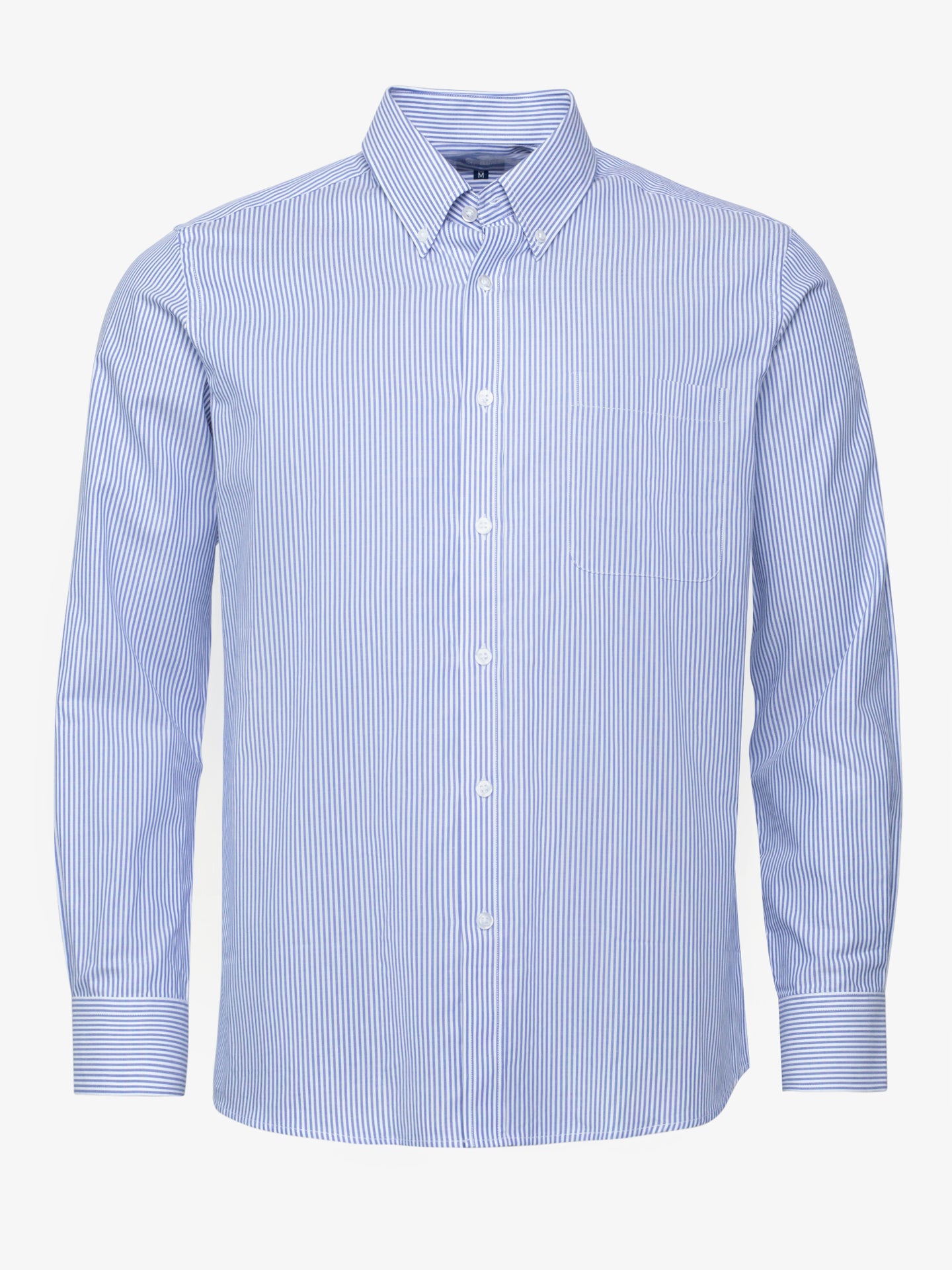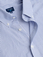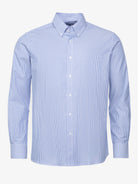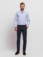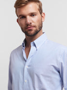 Camisa Homem Oxford Regular Fit 100% Algodão Azul as riscas com bolso.