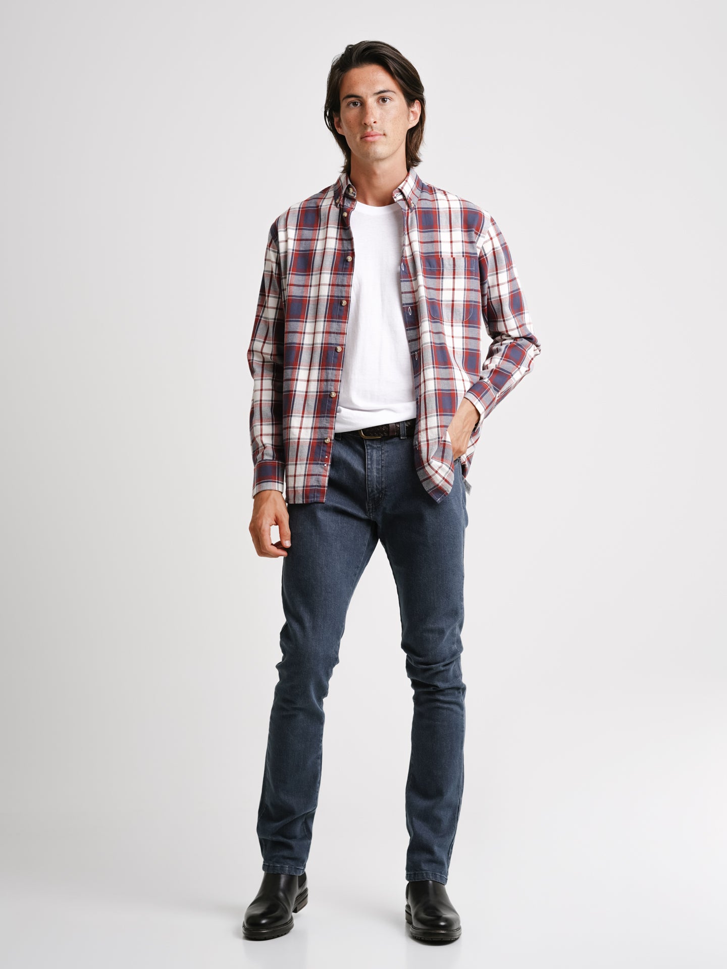 Camisa Regular Fit Flanela Azul Algodão Quadrados