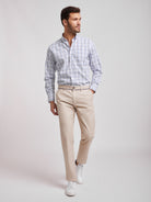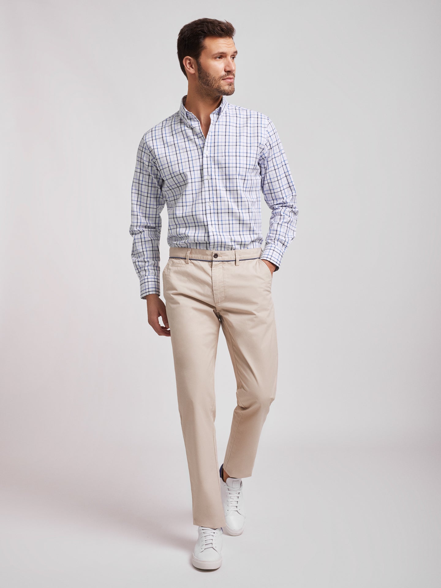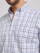 Camisa Oxford aos quadrados branco e azul em algodão regular fit