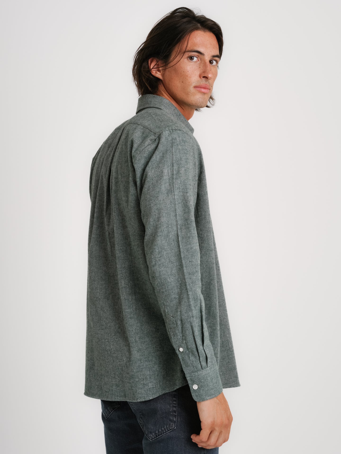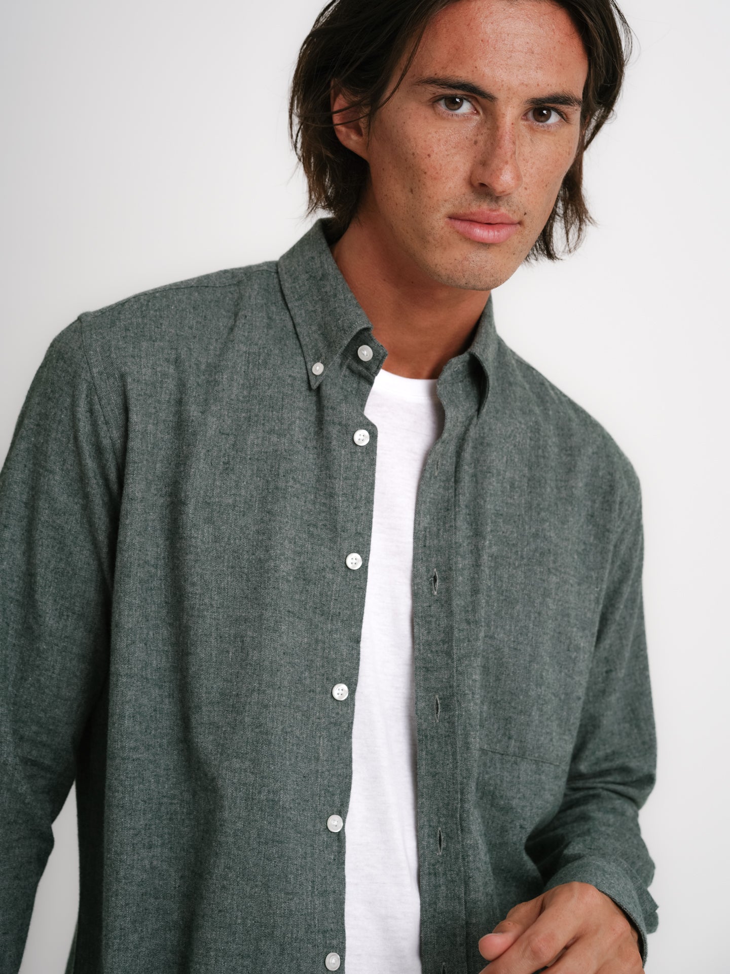 Camisa Regular Fit Twill Verde Algodão Liso Com bolso