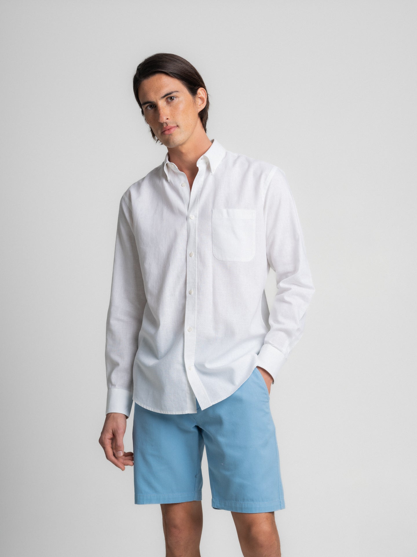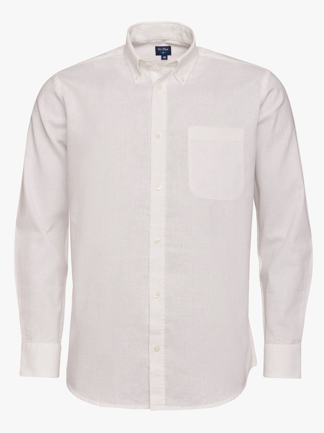 Camisa Regular Fit Linho Branca Manga Comprida Com bolso