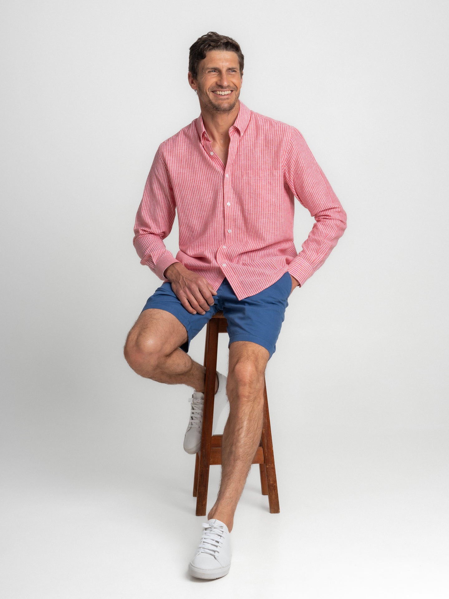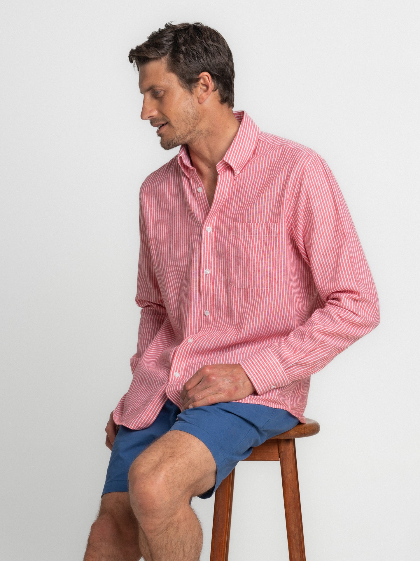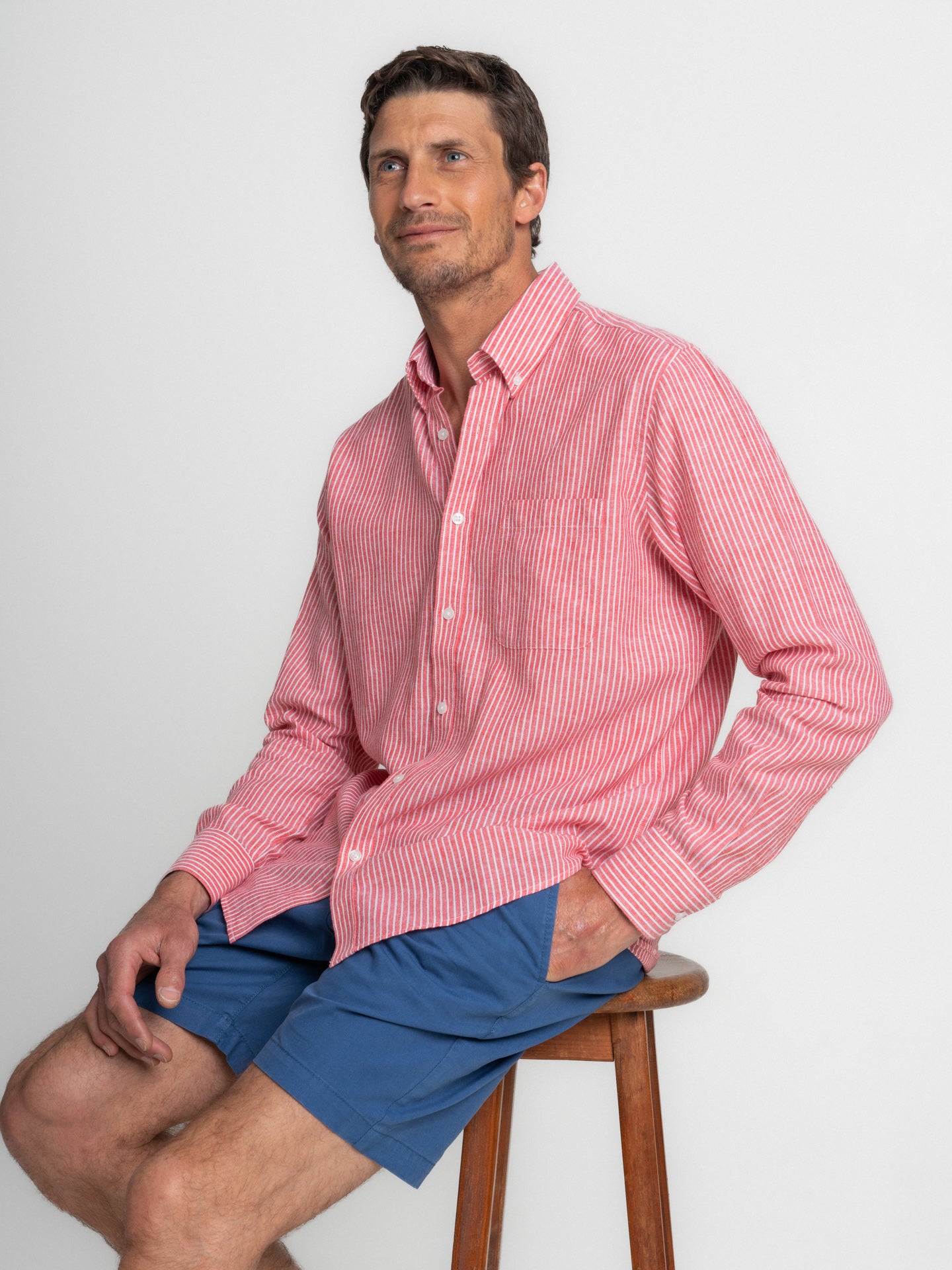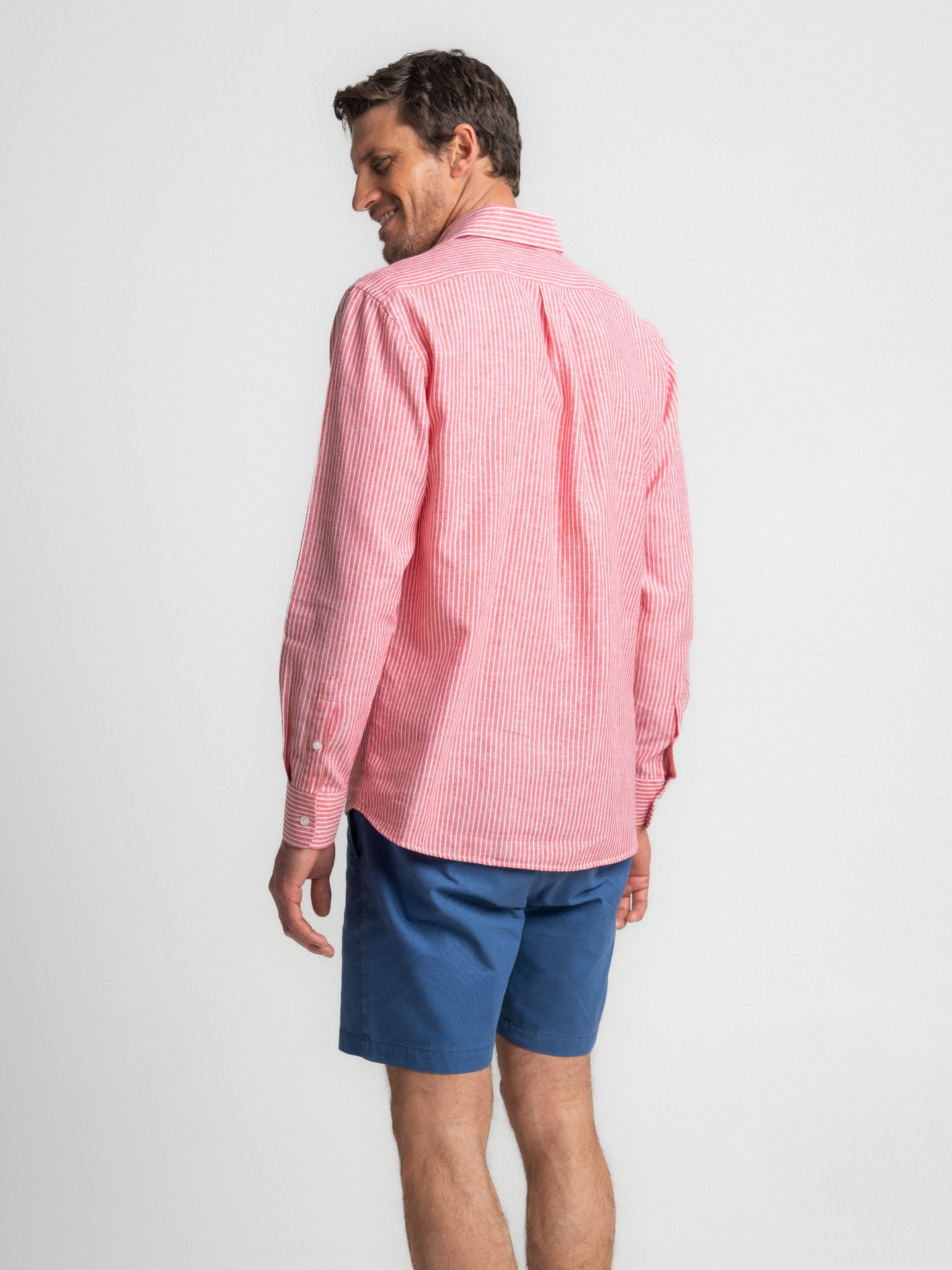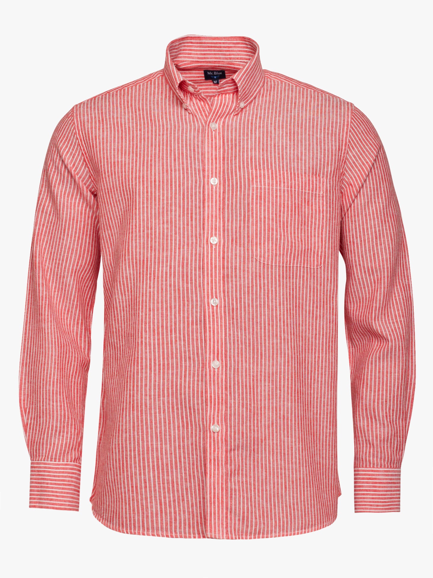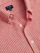 Camisa Regular Fit Linho Vermelha Manga Comprida Com bolso às Riscas