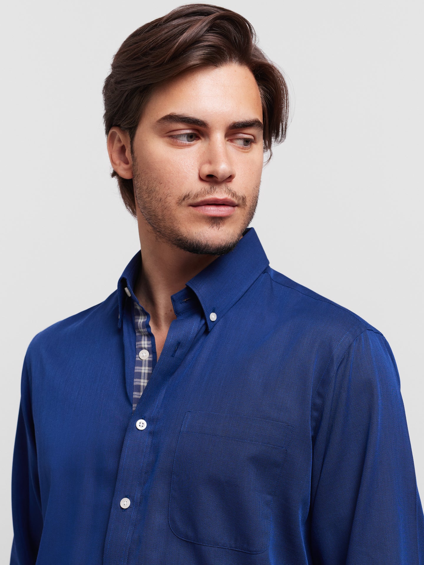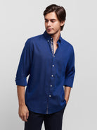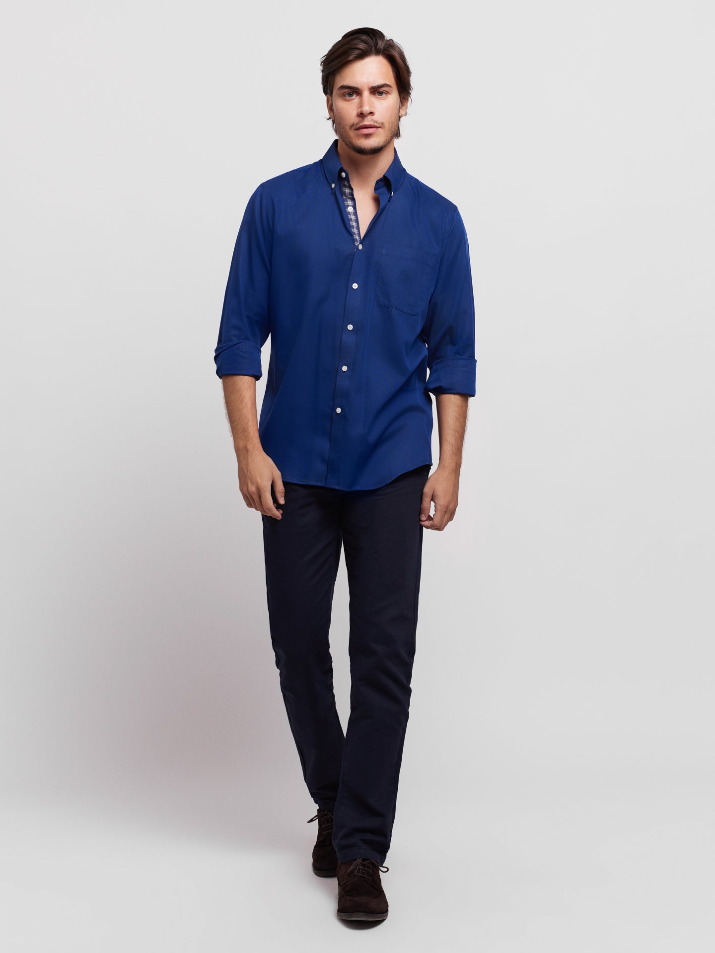 Camisa Regular Fit Azul Manga CompridaManga Comprida Liso Com Bolso