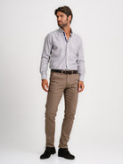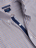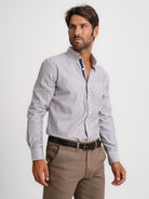 Camisa Regular Fit Twill Azul Algodão Riscas Com bolso