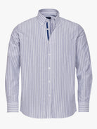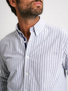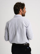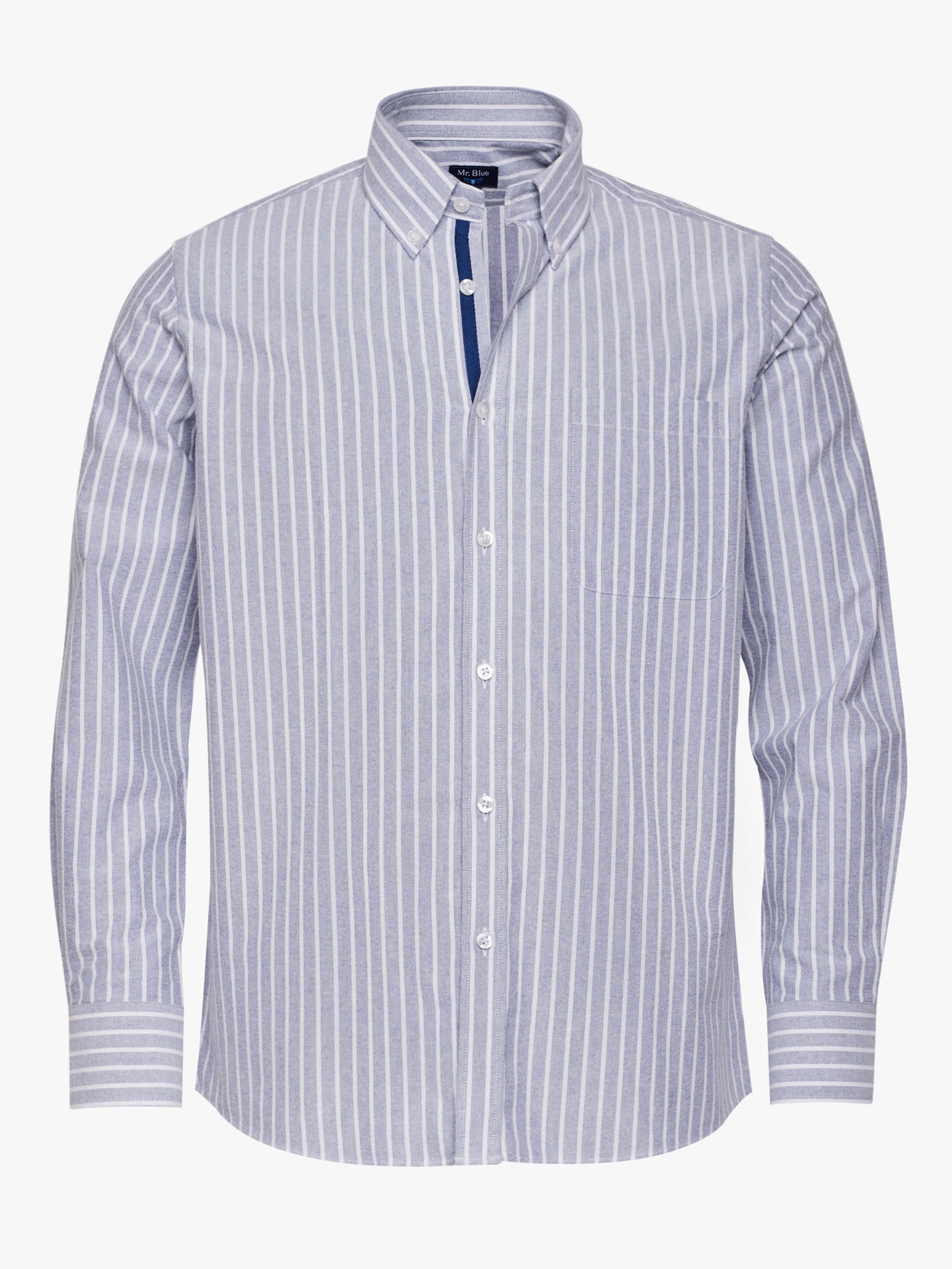 Camisa Regular Fit Oxford Azul Algodão Riscas Com bolso