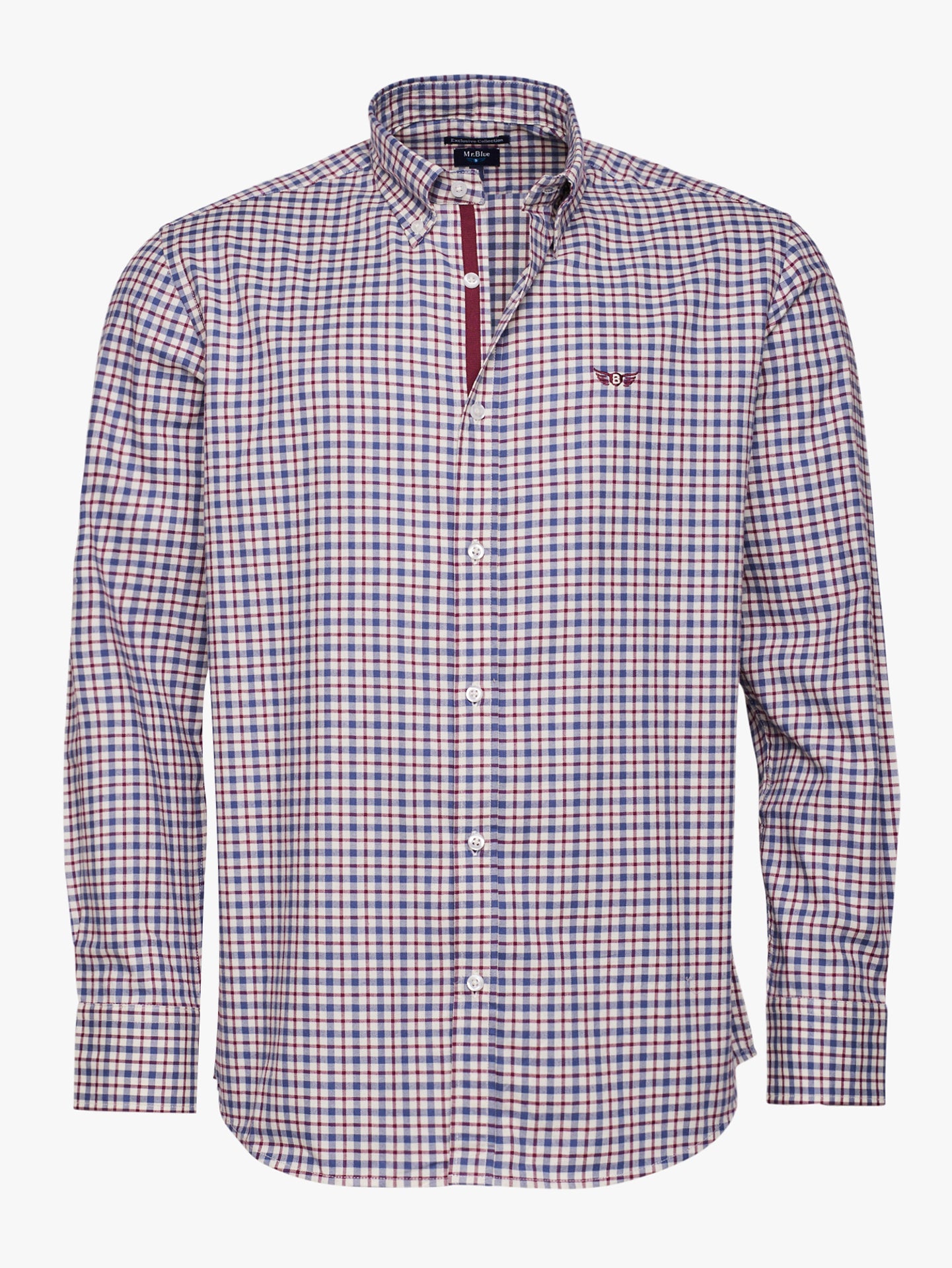Camisa Regular Fit Vaiela Azul Algodão Quadrados Com logo