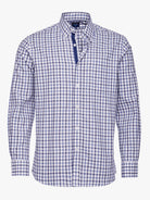 Camisa Regular Fit Twill Azul Algodão Quadrados Com bolso