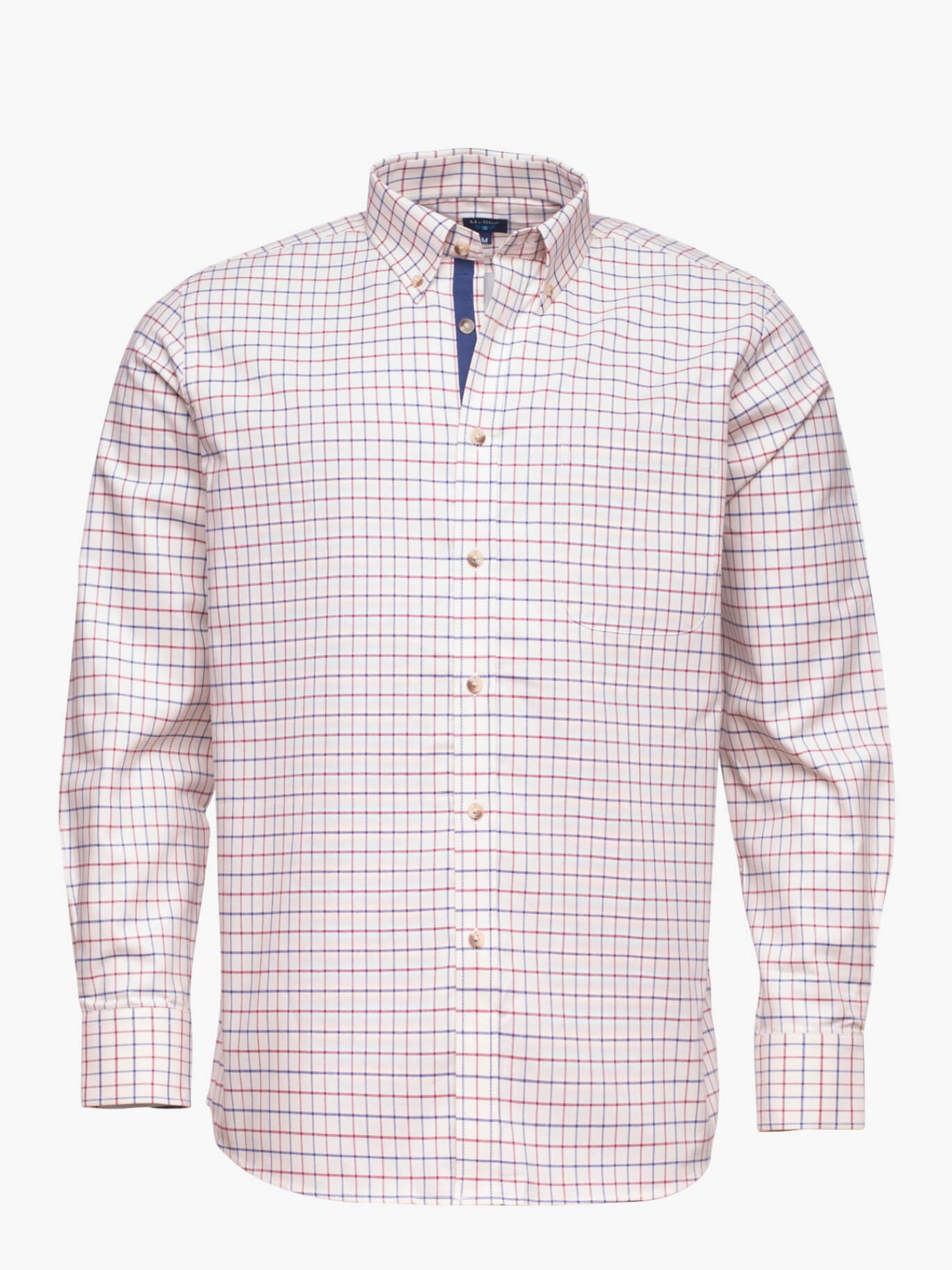 Camisa para homem aos quadrados grandes azul escuro e bordeaux com bolso e carcela em azul marinho. Confecionada em tecido 100% algodão, colarinho abotoado, manga comprida. Fabricada com fibras naturais, esta camisa poderá ser usada com umas calças de gan