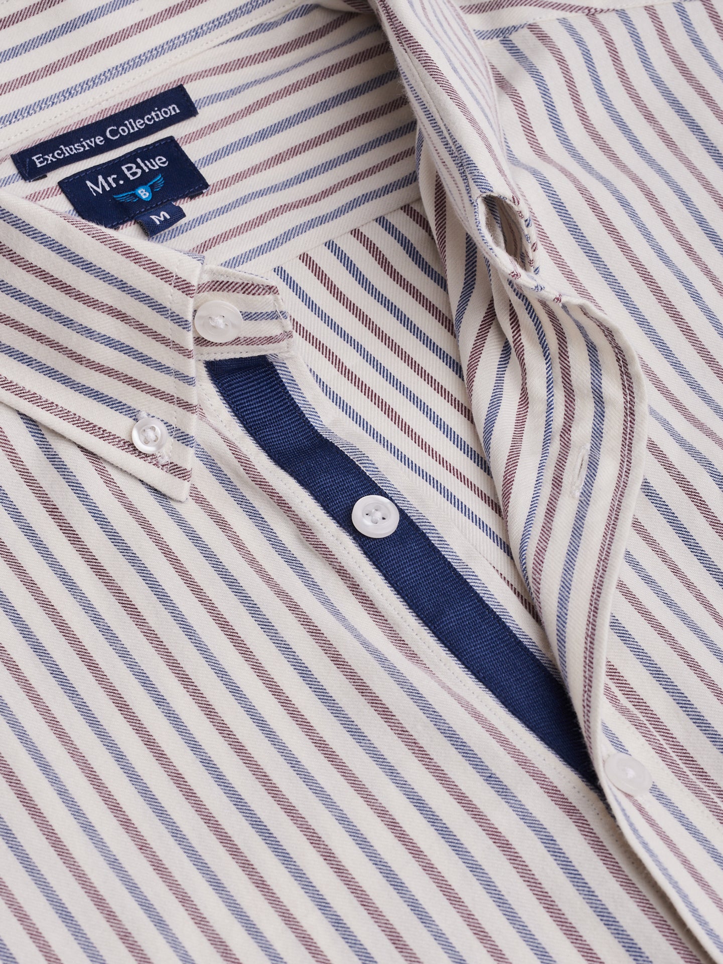 Camisa Regular Fit Vaiela Bege Algodão Riscas Com logo