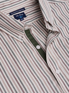 Camisa Regular Fit Twill Bege Algodão Riscas Com bolso