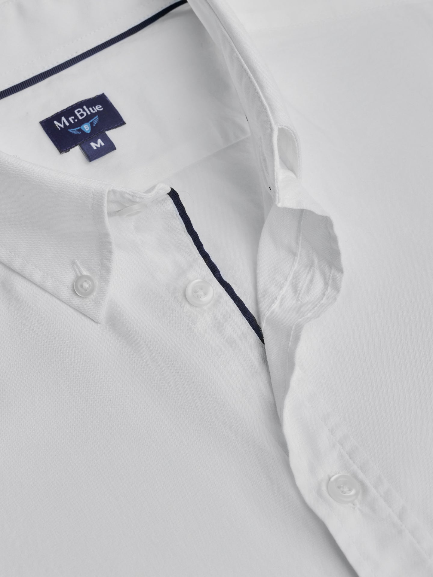 Camisa Regular Fit Oxford Branca Algodão Liso Com logo