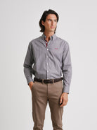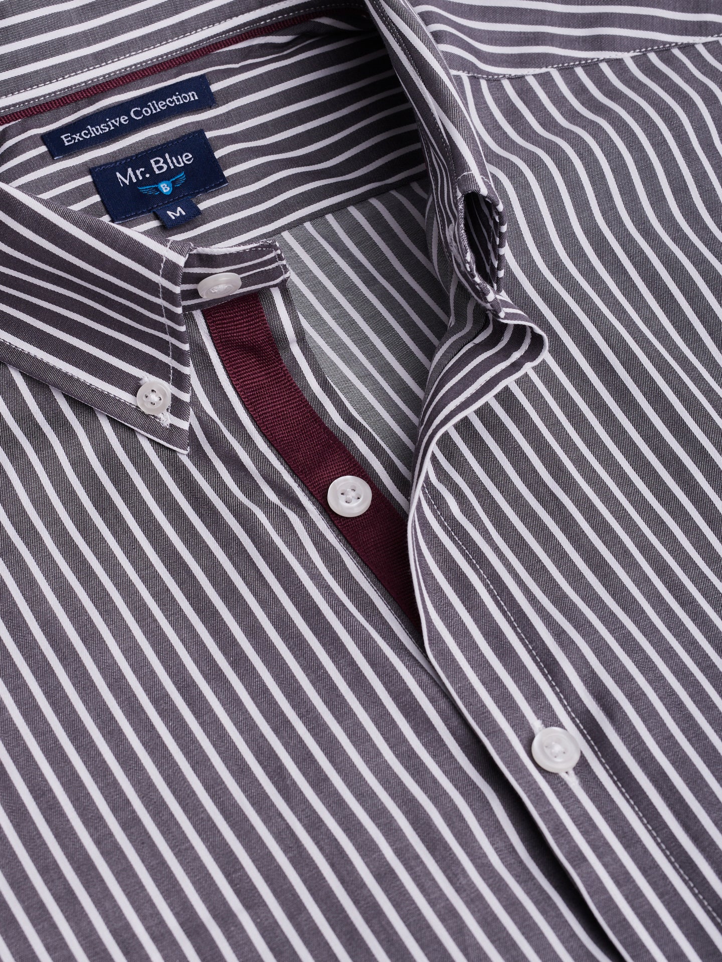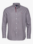 Camisa Regular Fit Twill Cinzenta Algodão Riscas Com logo