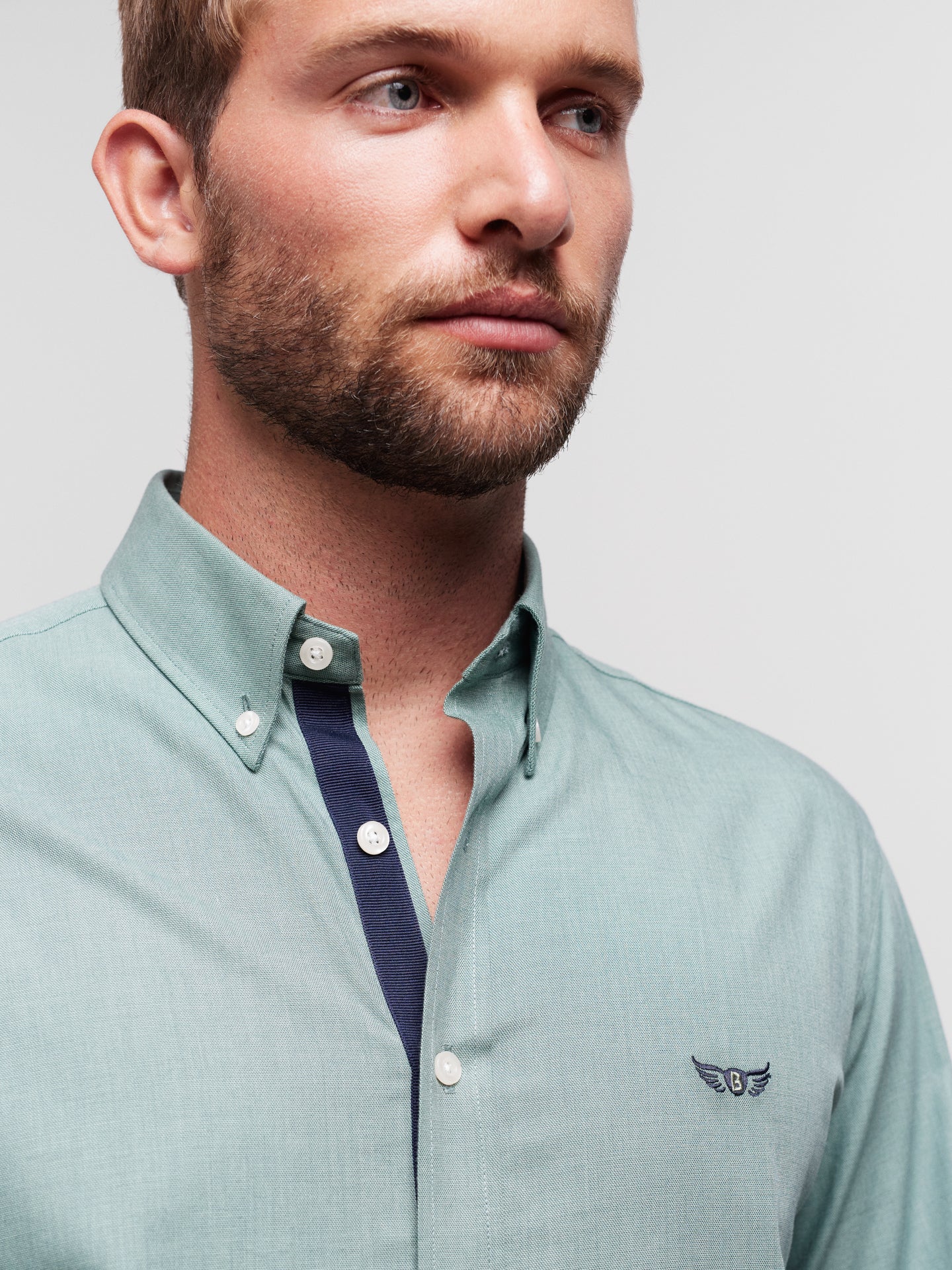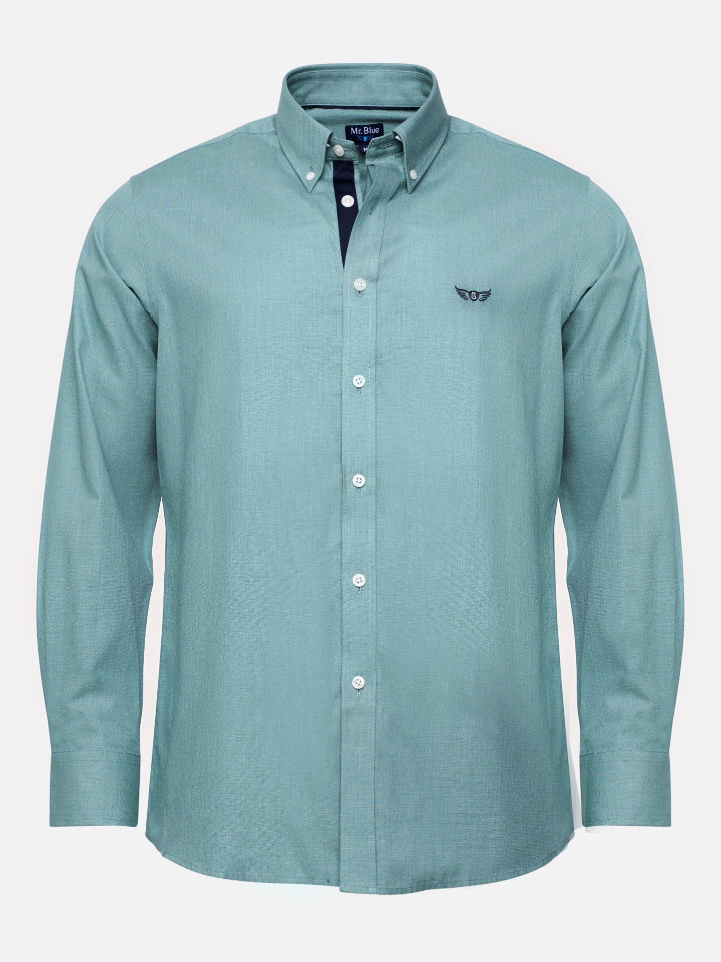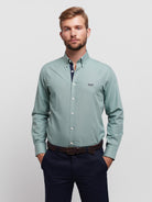 Camisa Regular Fit Oxford Verde Algodão Liso Com logo