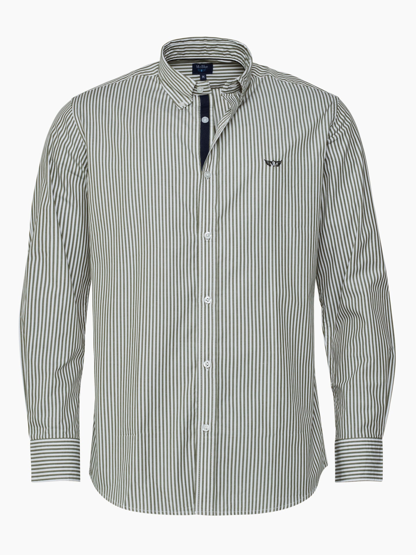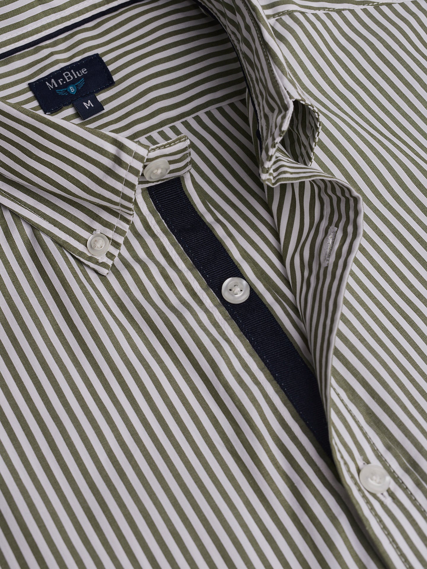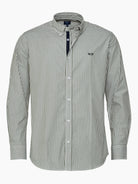 Camisa Regular Fit Popeline Verde Algodão Riscas Com logo