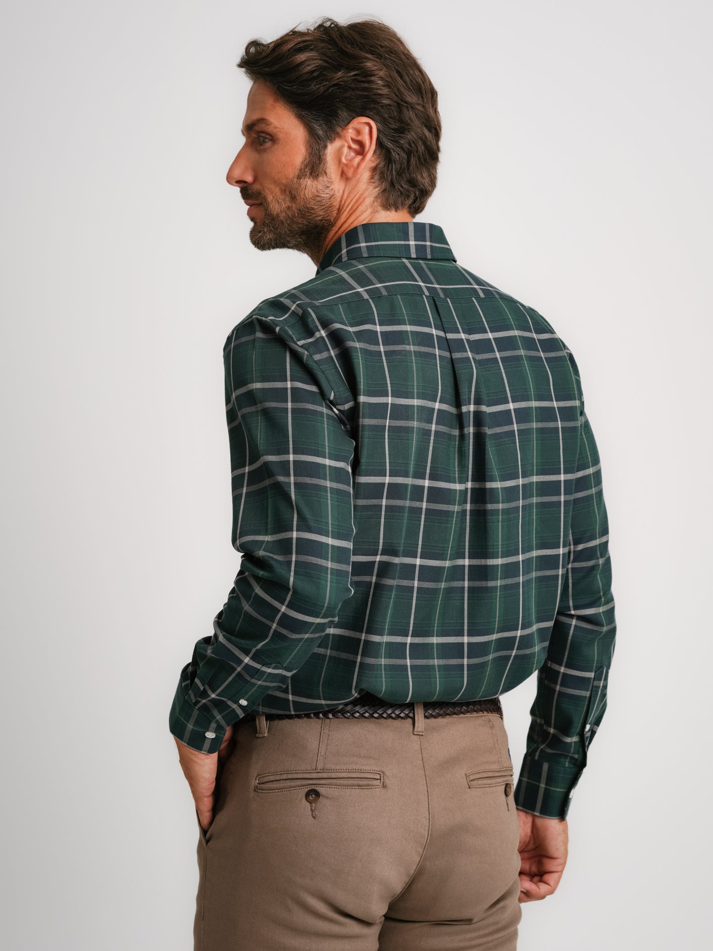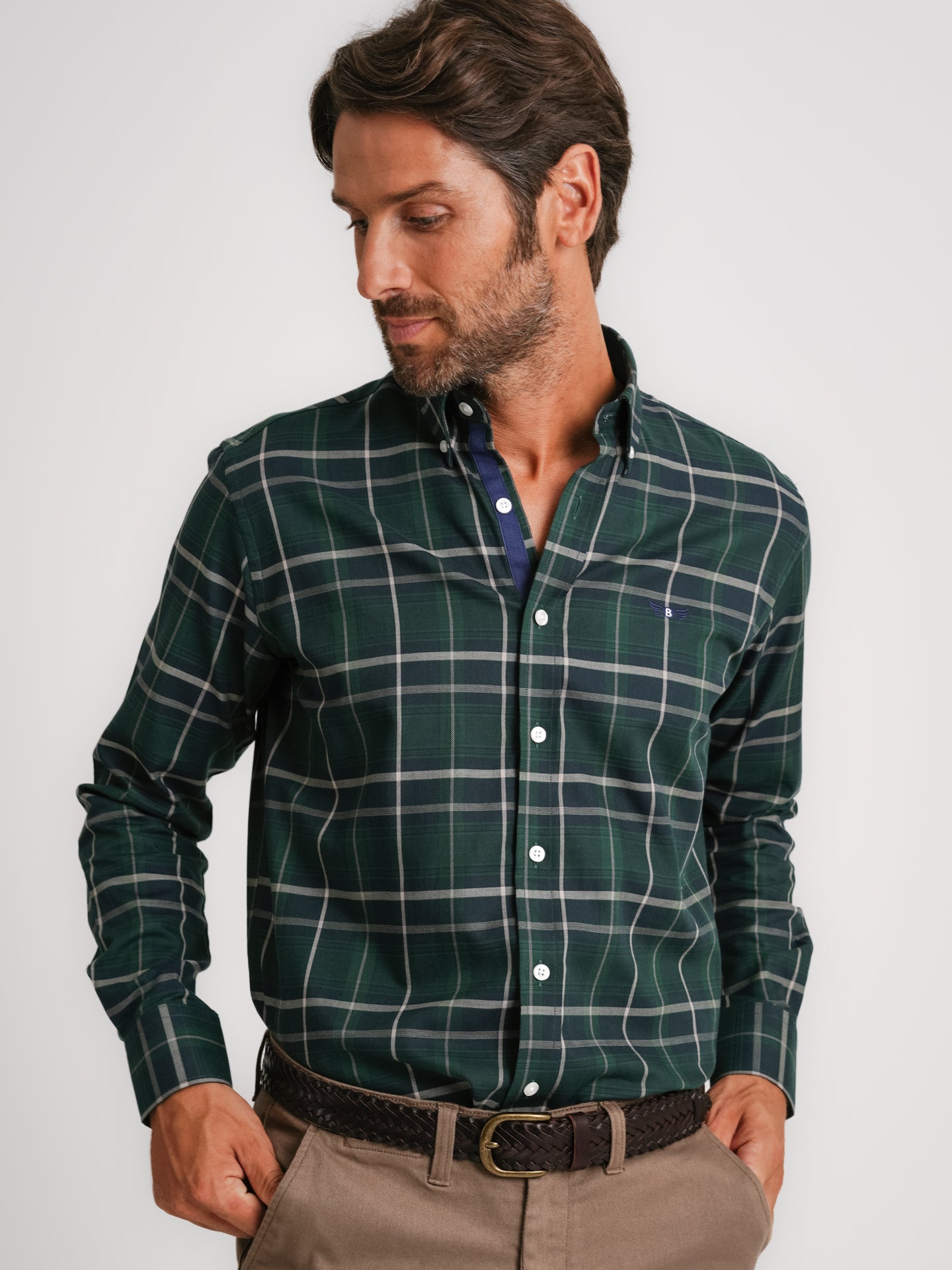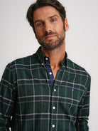 Camisa Regular Fit Twill Verde Algodão Quadrados Com logo