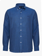 Camisa Regular Fit Twill Azul Algodão Liso Com logo