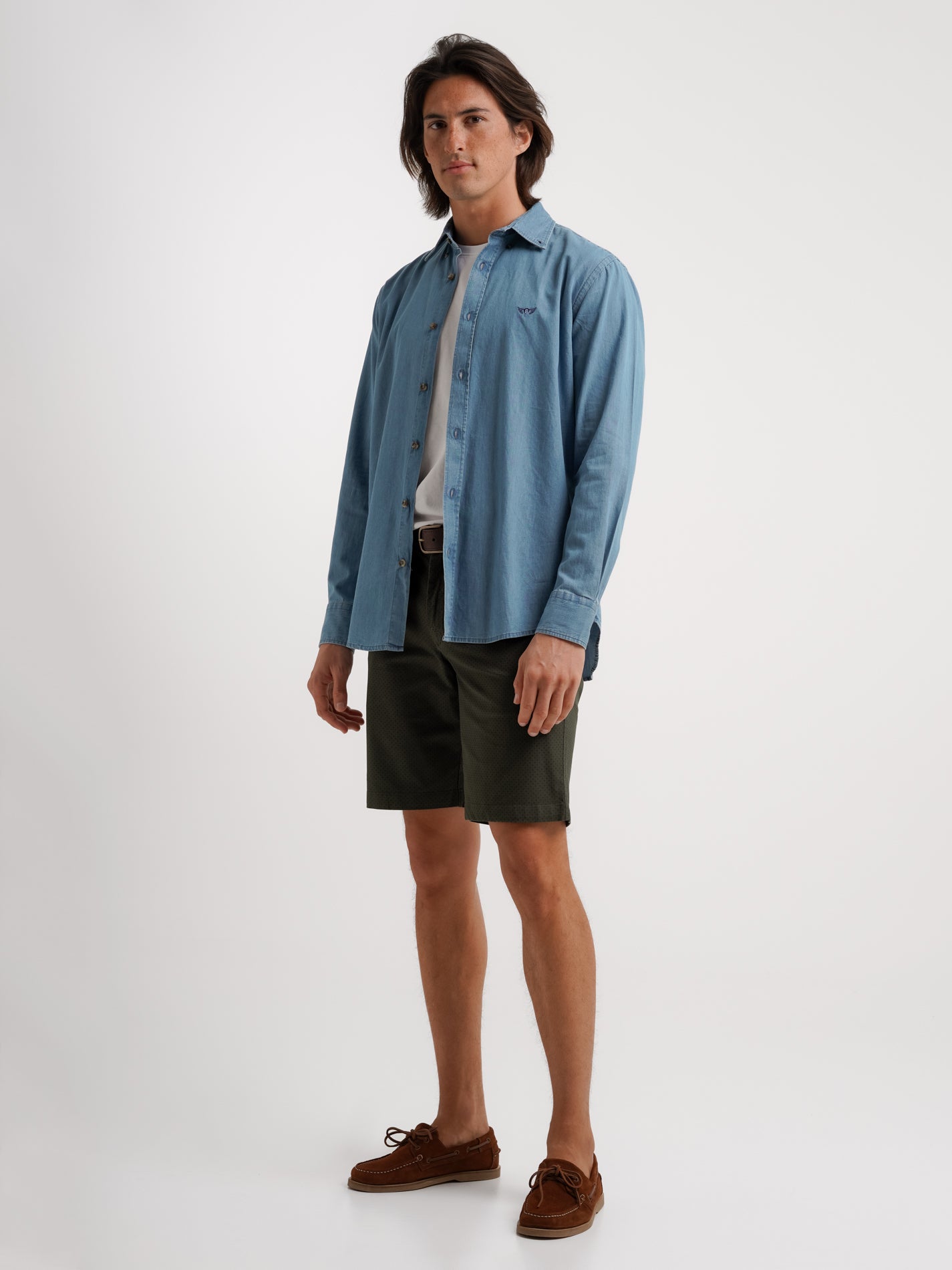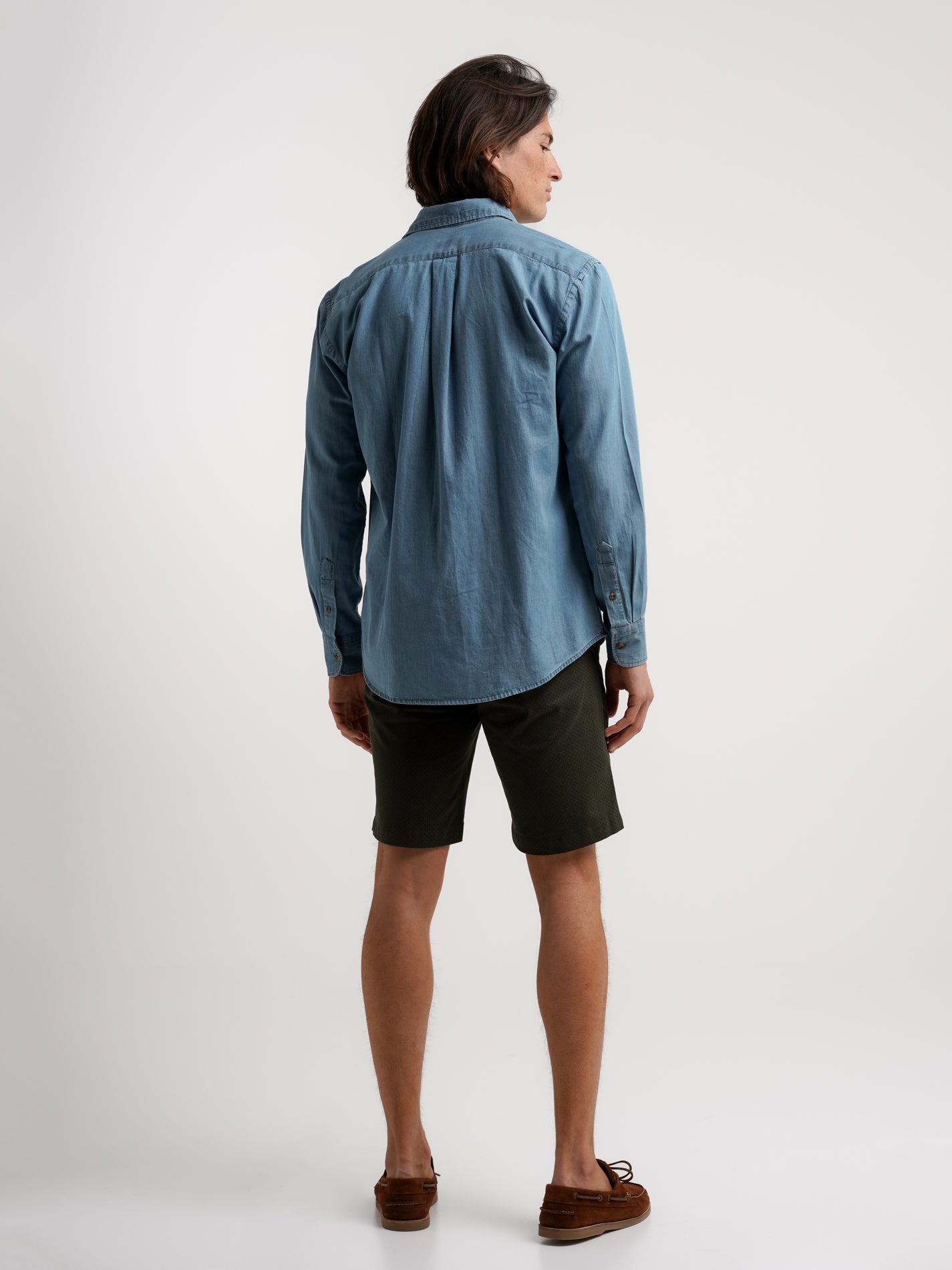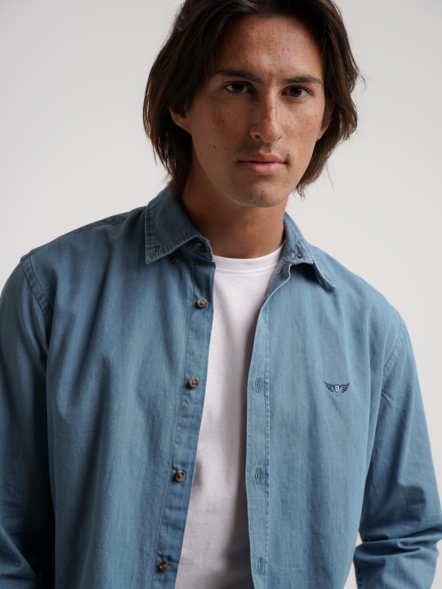 Camisa Regular Fit Ganga Azul Algodão Lisa Com logo