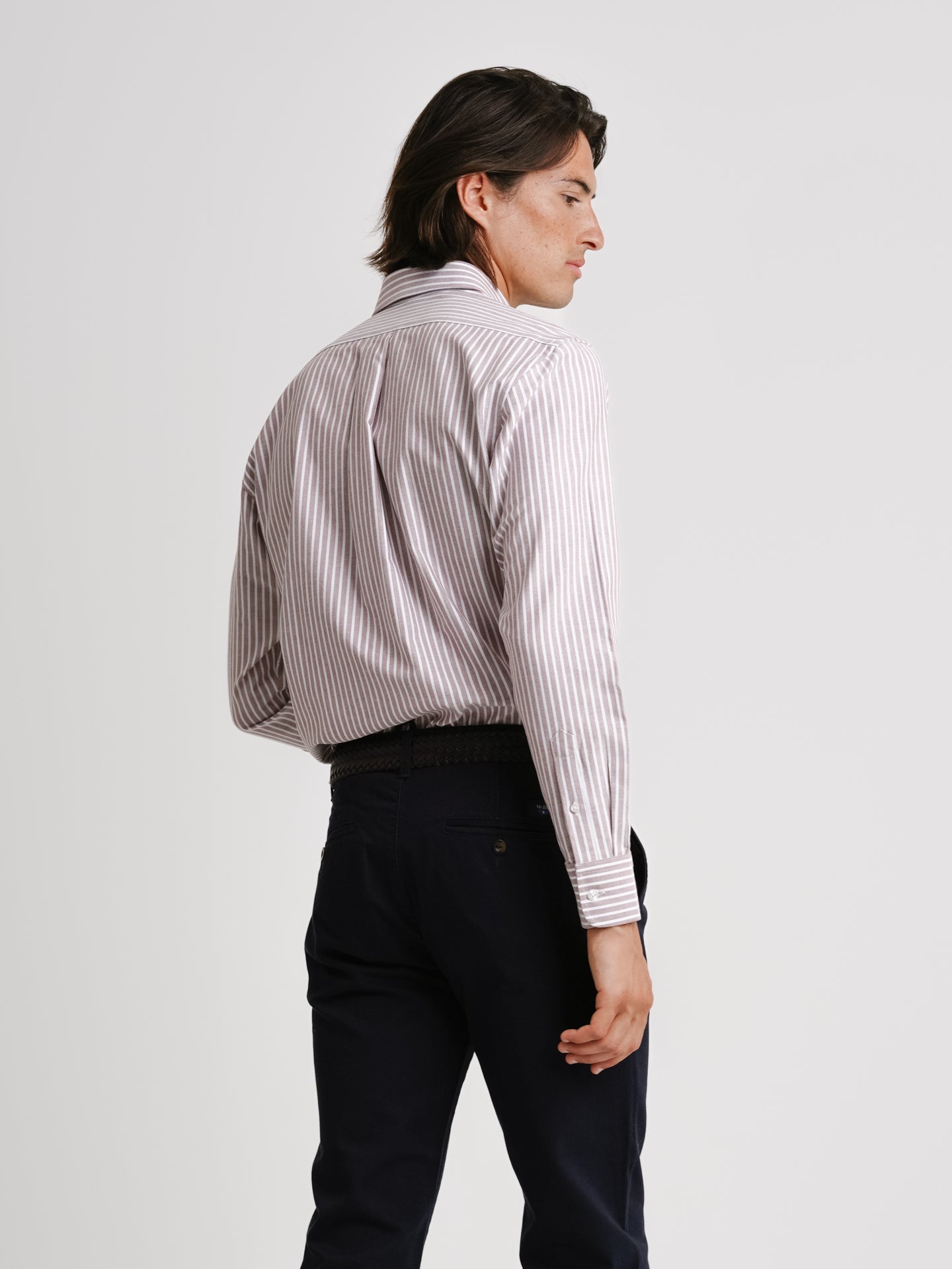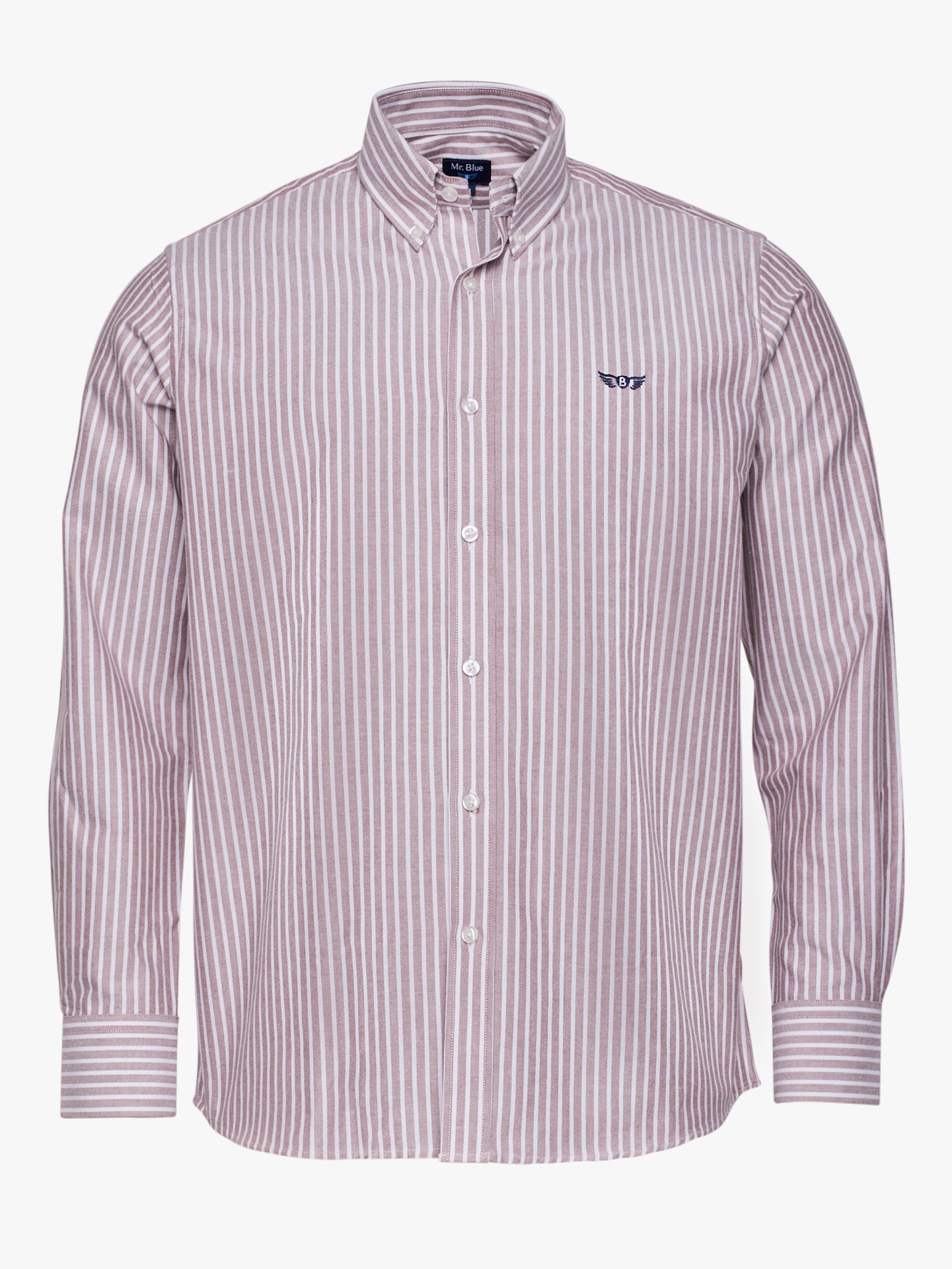 Camisa Regular Fit Oxford Castanha Algodão Riscas Com logo