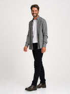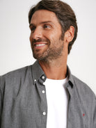 Camisa Regular Fit Twill Cinzenta Algodão Liso Com logo