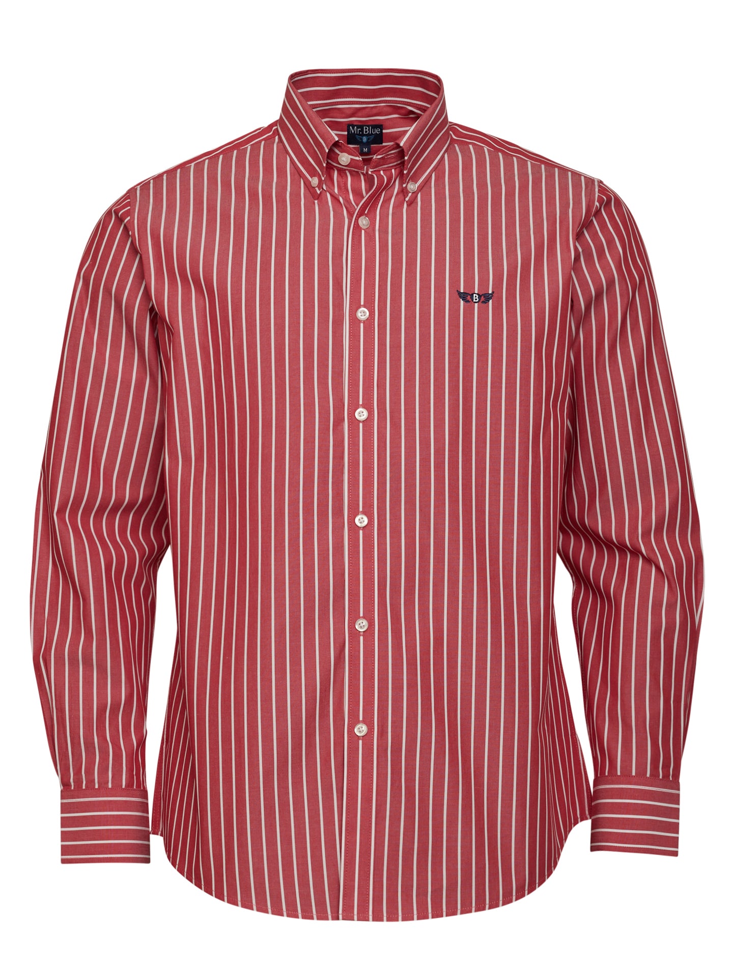 Camisa Regular Fit Fil-a-Fil Vermelha Algodão Riscas Com logo