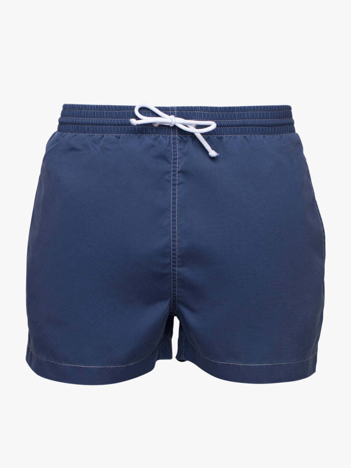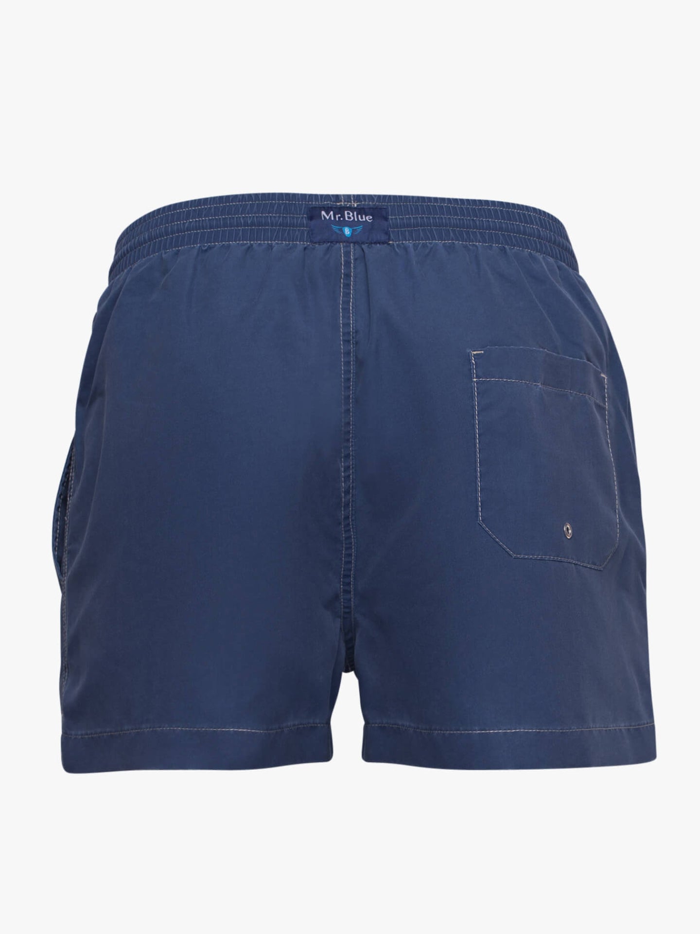 Calção de Banho Homem estilo Italiano azul escuro faded. Bolsos laterais e bolso traseiro com fecho em velcro