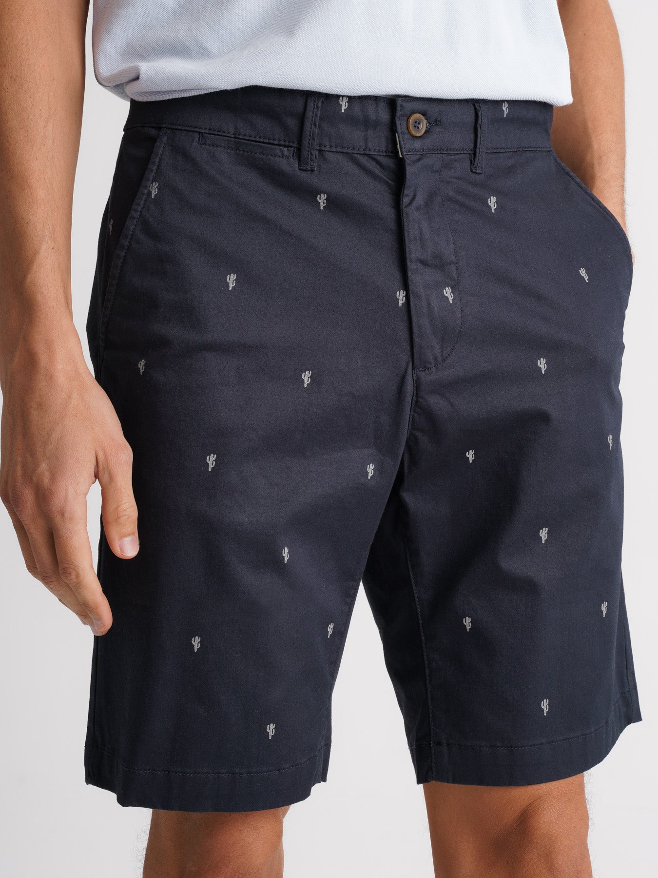 Calções Regular Fit Azuis Algodão Com Padrão