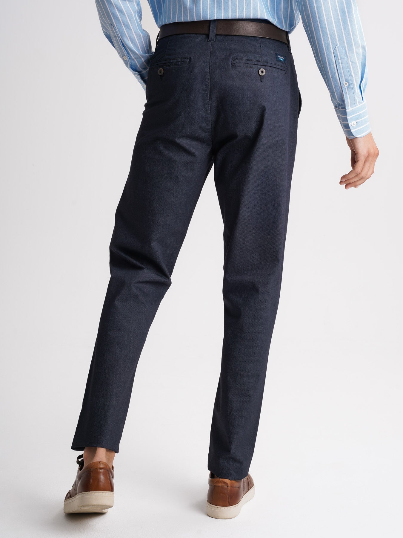 Calças Chinos Regular Fit Azuis De Algodão Com Padrão
