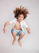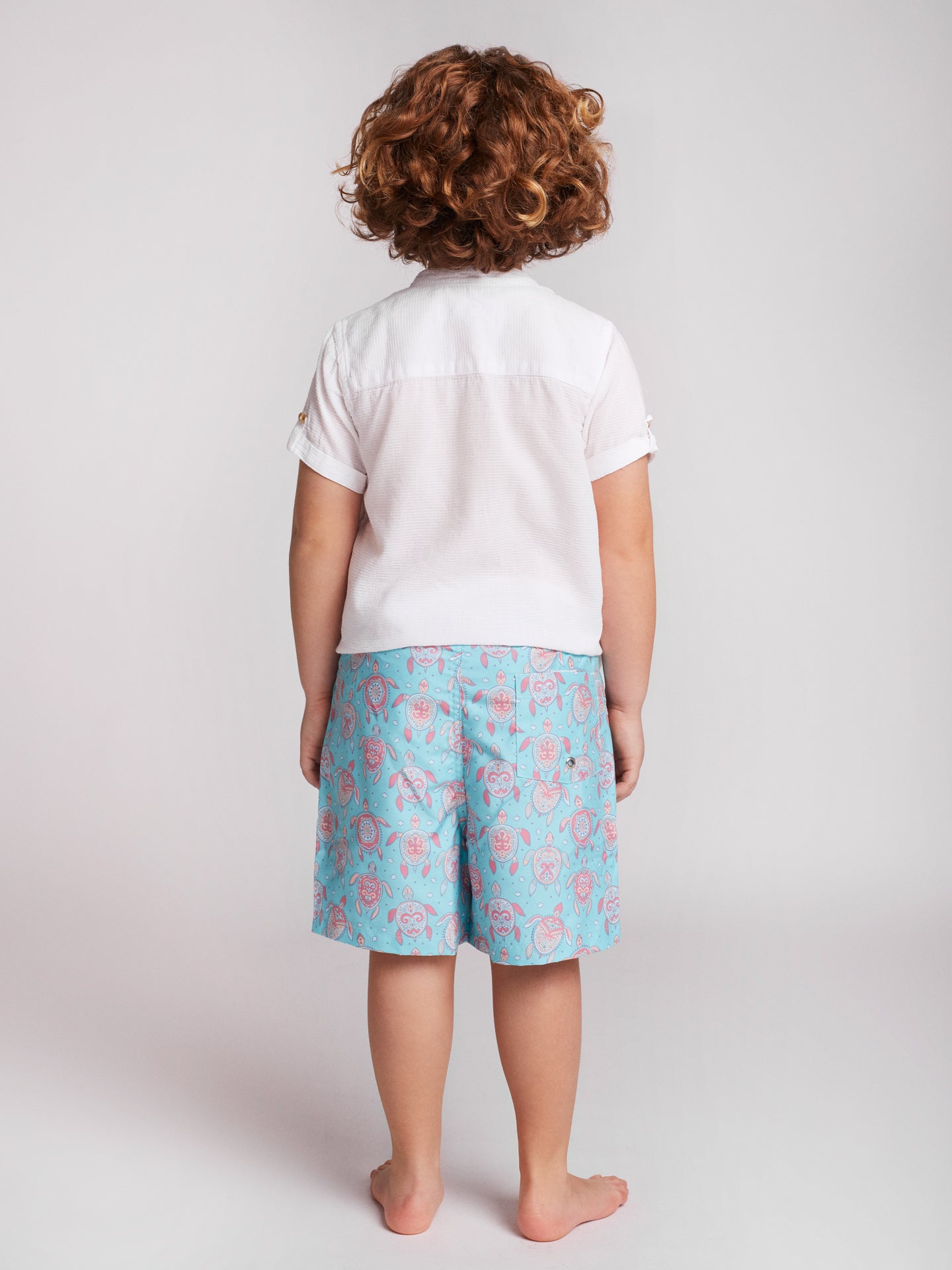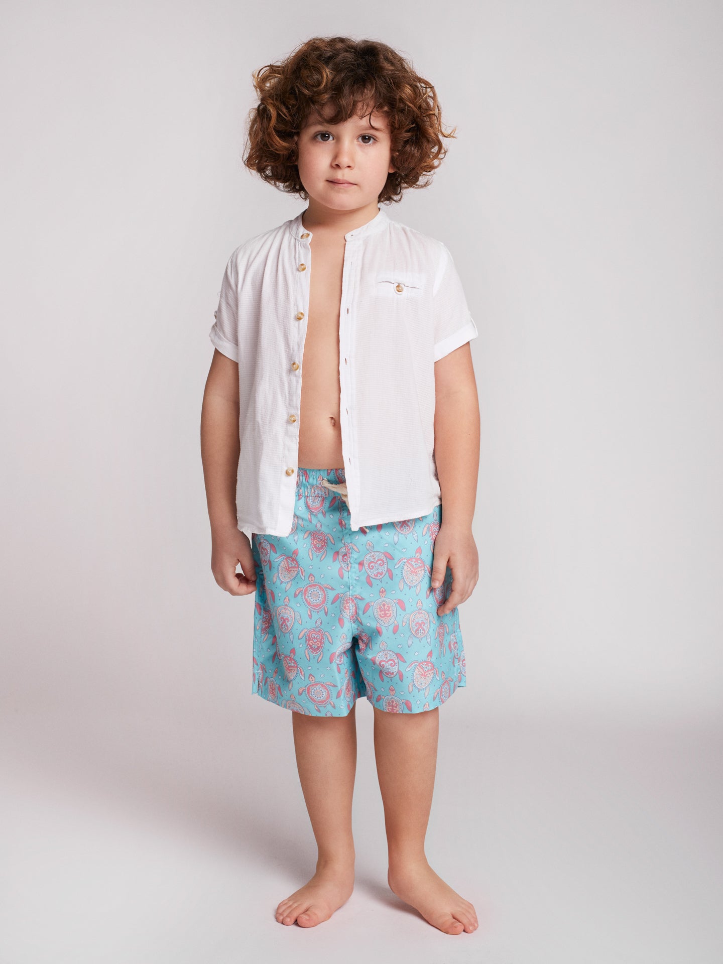 Calção de banho clássico de criança com padrão rosa e azul